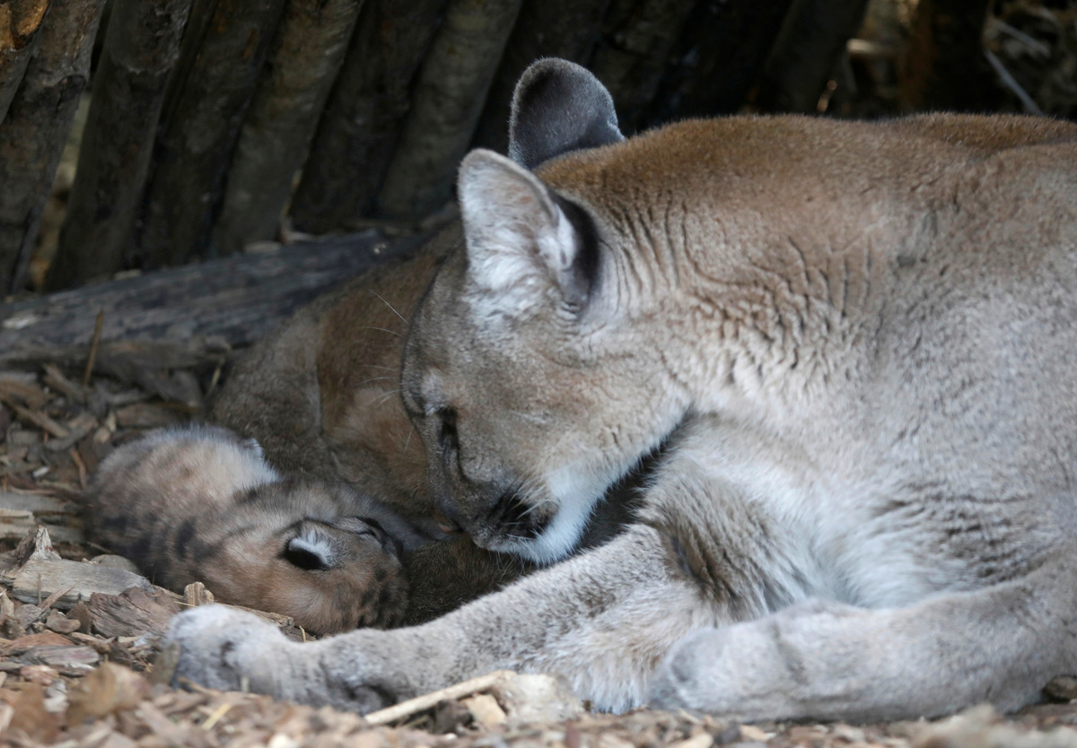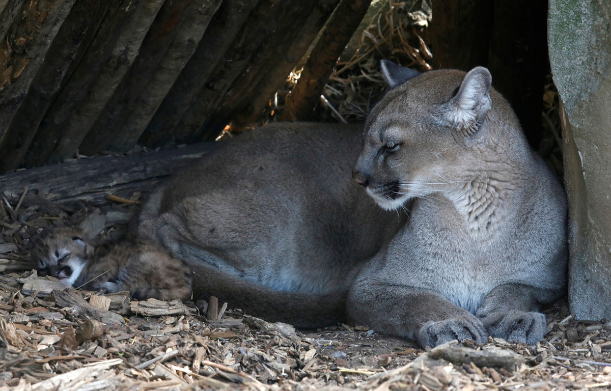 The zoo said in a statement the father and another female puma in the enclosure were getting along well. The male was captured in Chile after it had taken to attacking livestock and brought to the zoo as it could not be reintroduced to the wild.