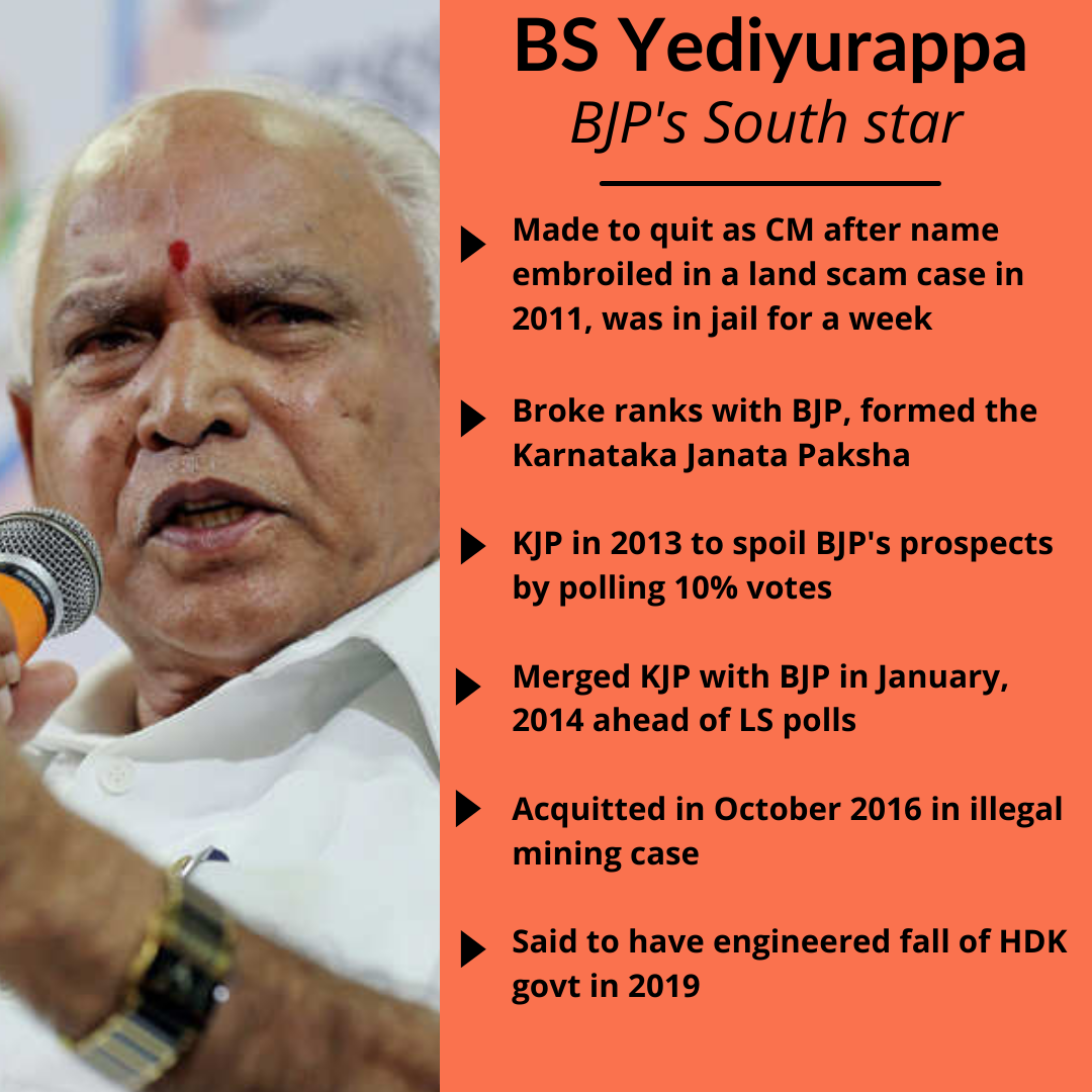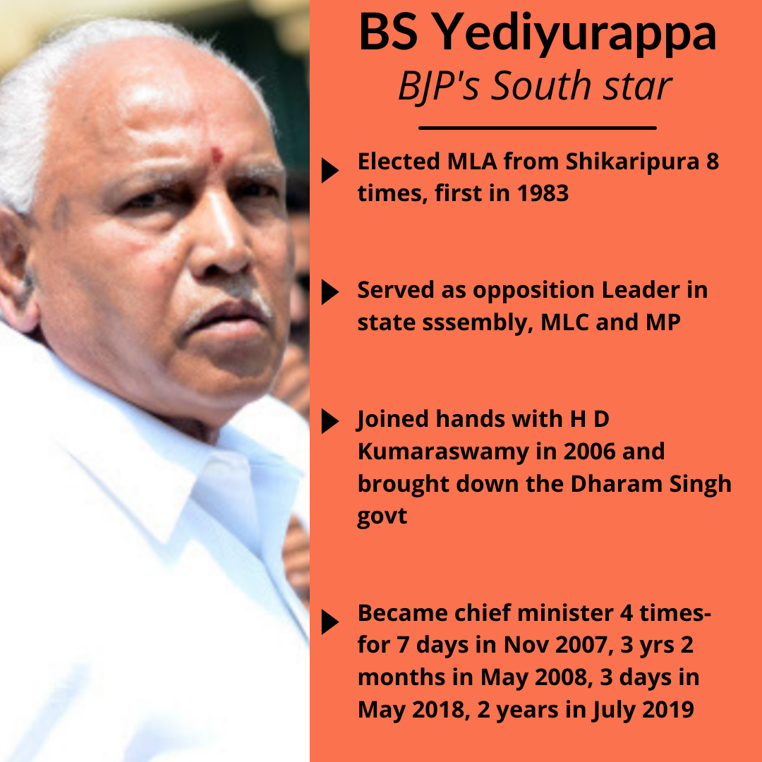 From the humdrum existence as a government clerk and a hardware store owner to becoming the chief minister four times, Yediyurappa has navigated the choppy waters of politics with the consummate ease of a seasoned oarsman.