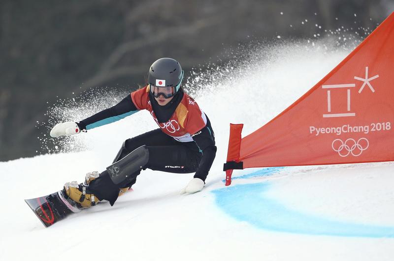 Tomoka Takeuchi runs the course during the women's parallel giant slalom at the Pyeongchang Olympics on Saturday. The Sochi silver medalist missed out on a medal as she failed to advance to the semifinals after losing to Selina Joerg of Germany, who won silver. Takeuchi finished fifth.
