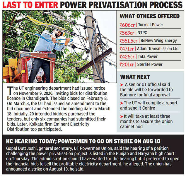 The empowered committee opened the bids on Wednesday after UT administrator V P Singh Badnore had approved the report of the technical evaluation committee. The file will be forwarded to Badnore for approval. The UT will compile a report and send it to power ministry for cabinet approval.