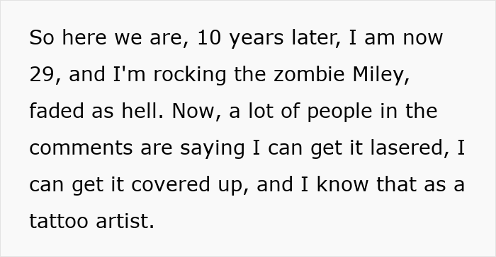 @sydneytattoos Replying to @Jessica Lee #greenscreen long live zombie miley #tattoo #tattooartist #zombie #zombiemiley #mileycyrus #bangers #tattoos #tattoofail #regret #tattooregret