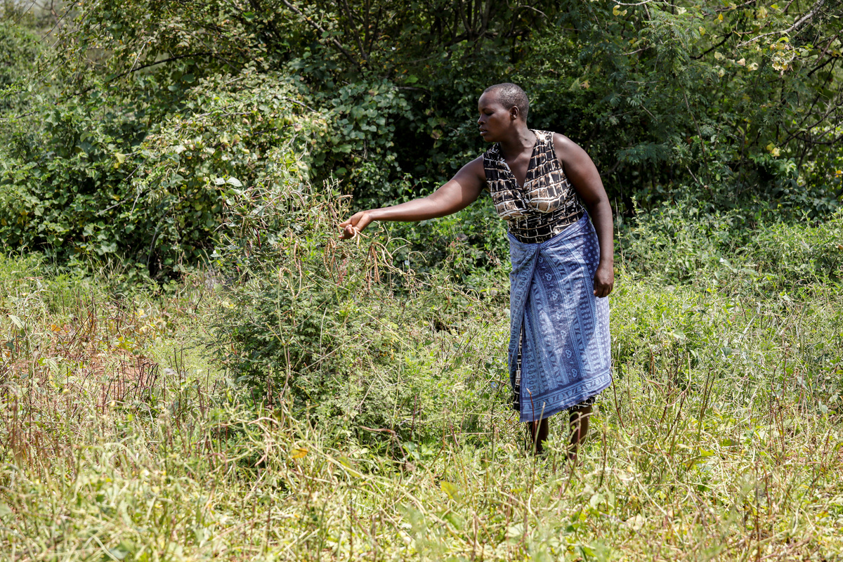 She has only managed to harvest one bag of millet and one bag of lentils since the locust invasion.