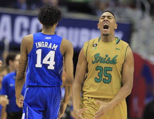 Colson, the preseason ACC Player of the Year, leads the Irish in points (21.4 per game) and rebounding (10.4). He had 22 points and matched his career high with 17 rebounds in Saturday's 68-59 win over Georgia Tech. It was his ninth double-double of the season and the 32nd of his career.