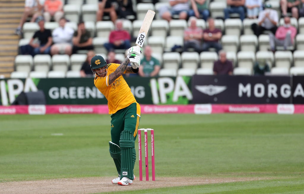 Alex Hales smashed an unbeaten 31 off just nine balls, finishing the match by slog-sweeping three sixes in four deliveries off leg-spinner Josh Poysden, while Peter Trego flayed 29 not out off 13 deliveries.