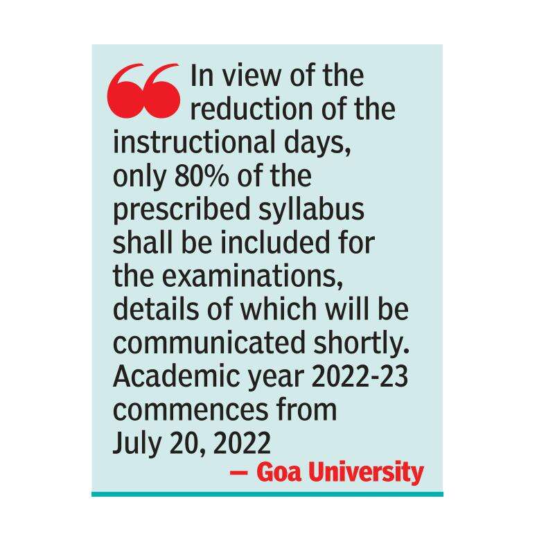 PANAJI: In an attempt to bring the academic schedule back on track after pandemic-caused disruptions, Goa University has curtailed the syllabus for general stream undergraduate and postgraduate programmes by 20% for the academic year 2021-22.