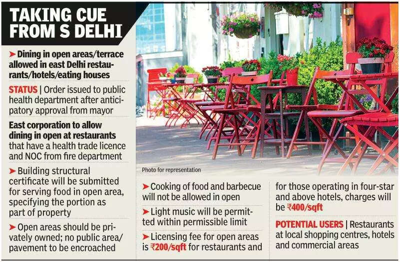 NEW DELHI: Following the decision of its southern counterpart, East Delhi Municipal Corporation too will allow open air restaurants in areas under its jurisdiction.