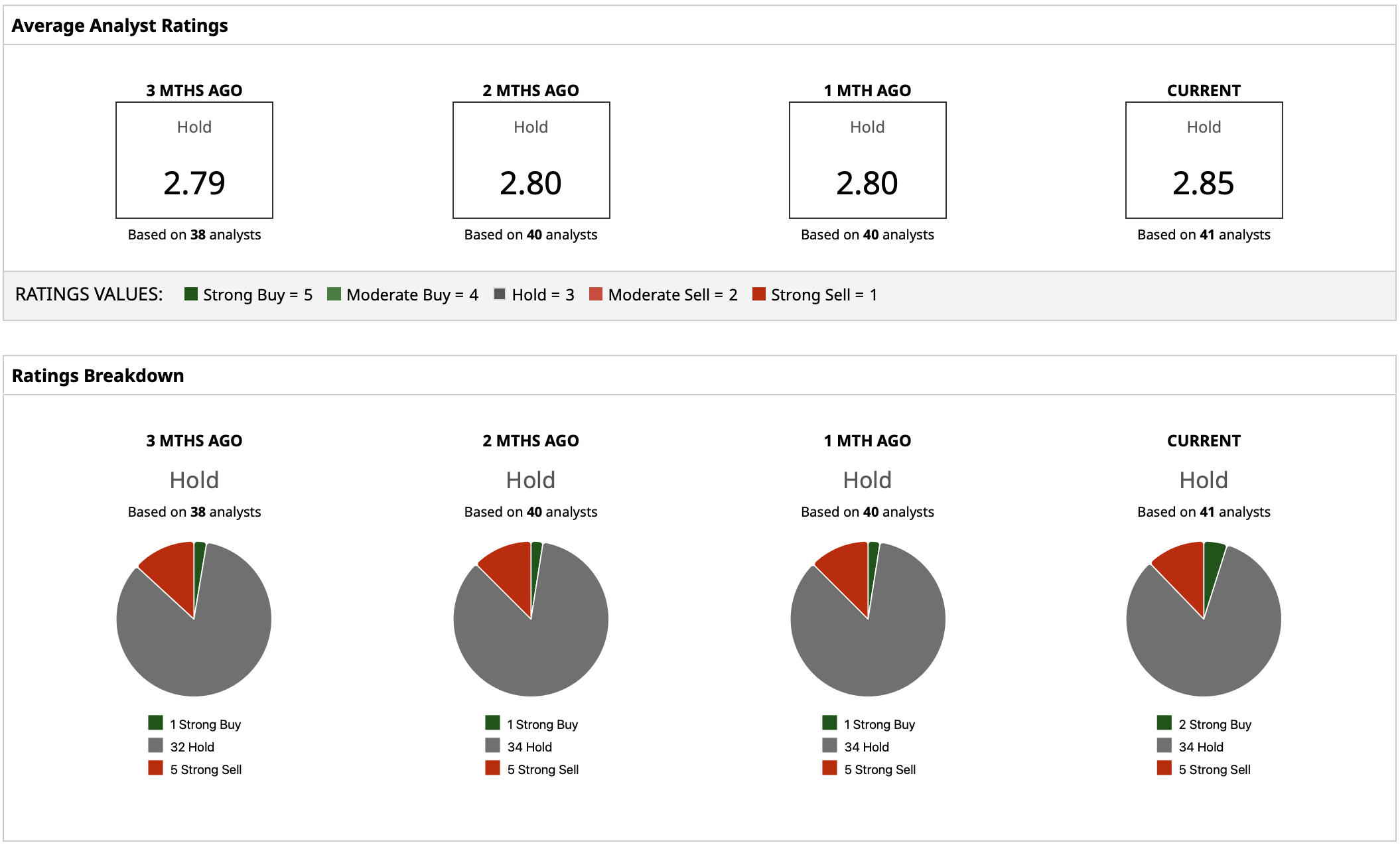 Intel earns a “Hold” rating consensus. During the last three months, a number of analysts have revised their forecast upwards, expecting a long-term revenue and margin expansion cycle as momentum picks up among its foundry wins of Intel. Intel’s consensus price target is $25.43, which would suggest upside of about 28% from current levels. The large forecast range—from a high of $43 to a low of $14—shows just how divided there is a view of Intel’s near-term execution and profitability.