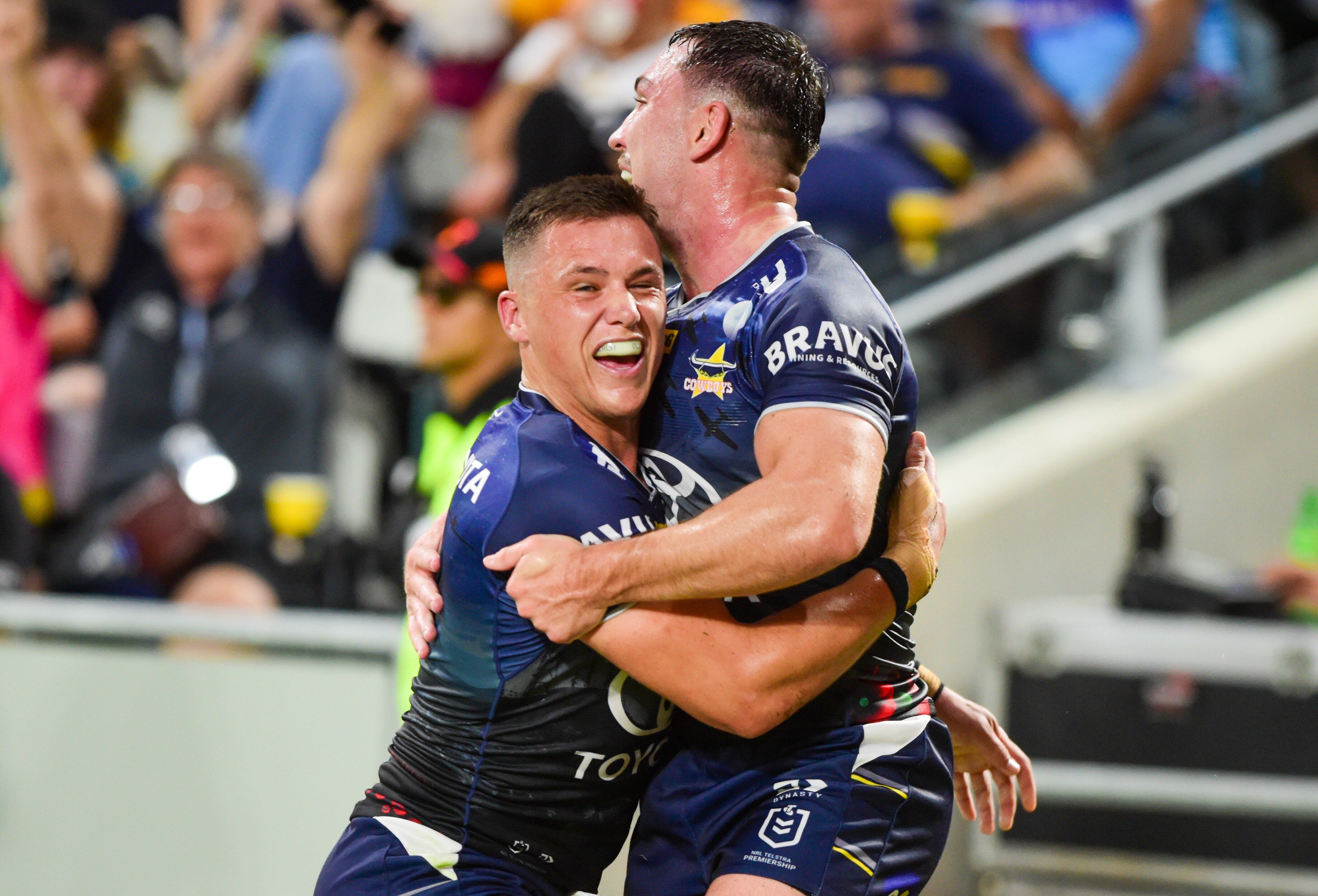 In the first half, it took just five minutes for the Cowboys to get on the board as Holmes drew in David Fifita and Patrick Herbert in midfield before finding Murray Taulagi who passed inside to Tom Dearden to score.