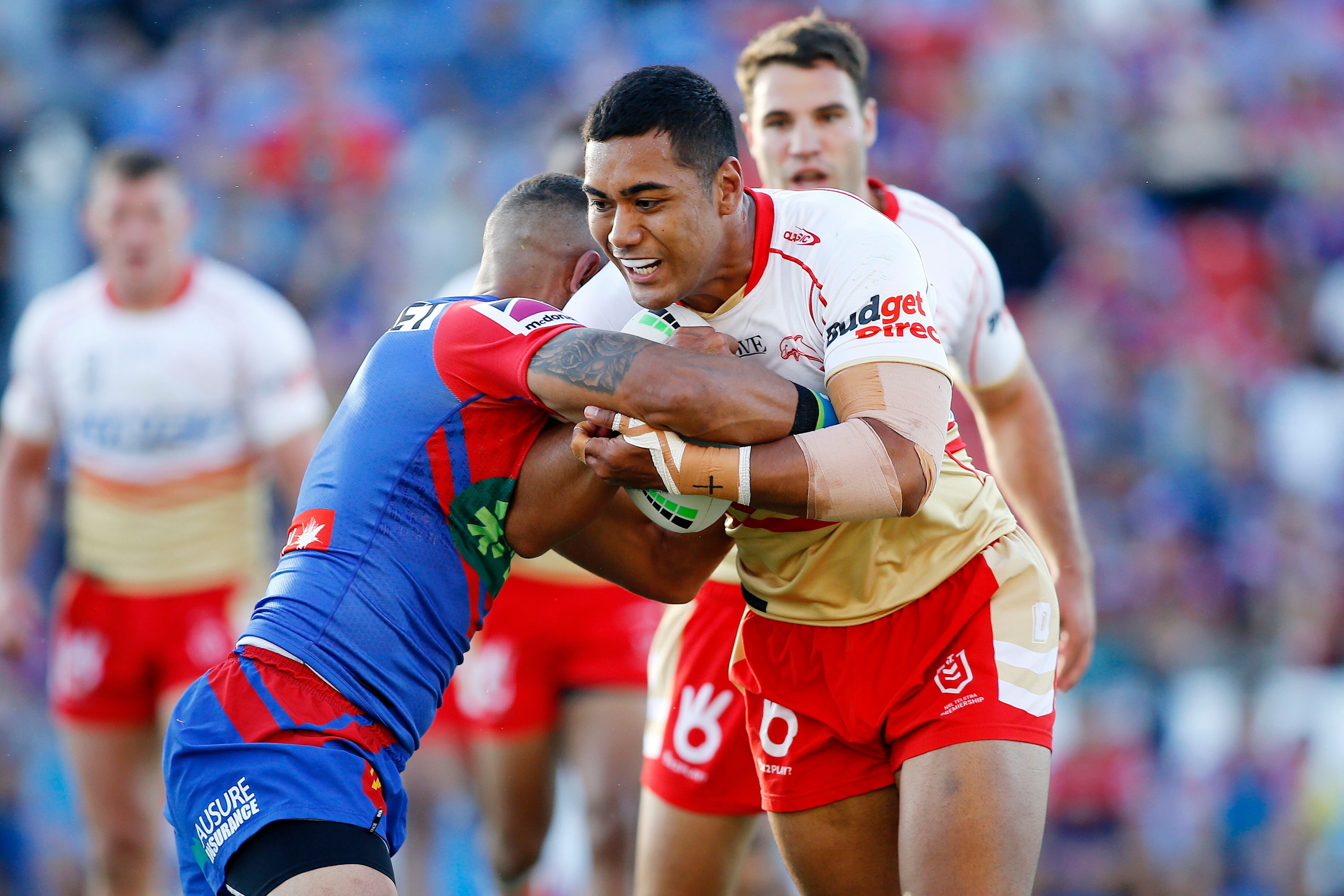 Former Bronco Tesi Niu bagged three tries as the Dolphins troubled the Knights down the left edge while containing the dangerous Dom Young nicely.
