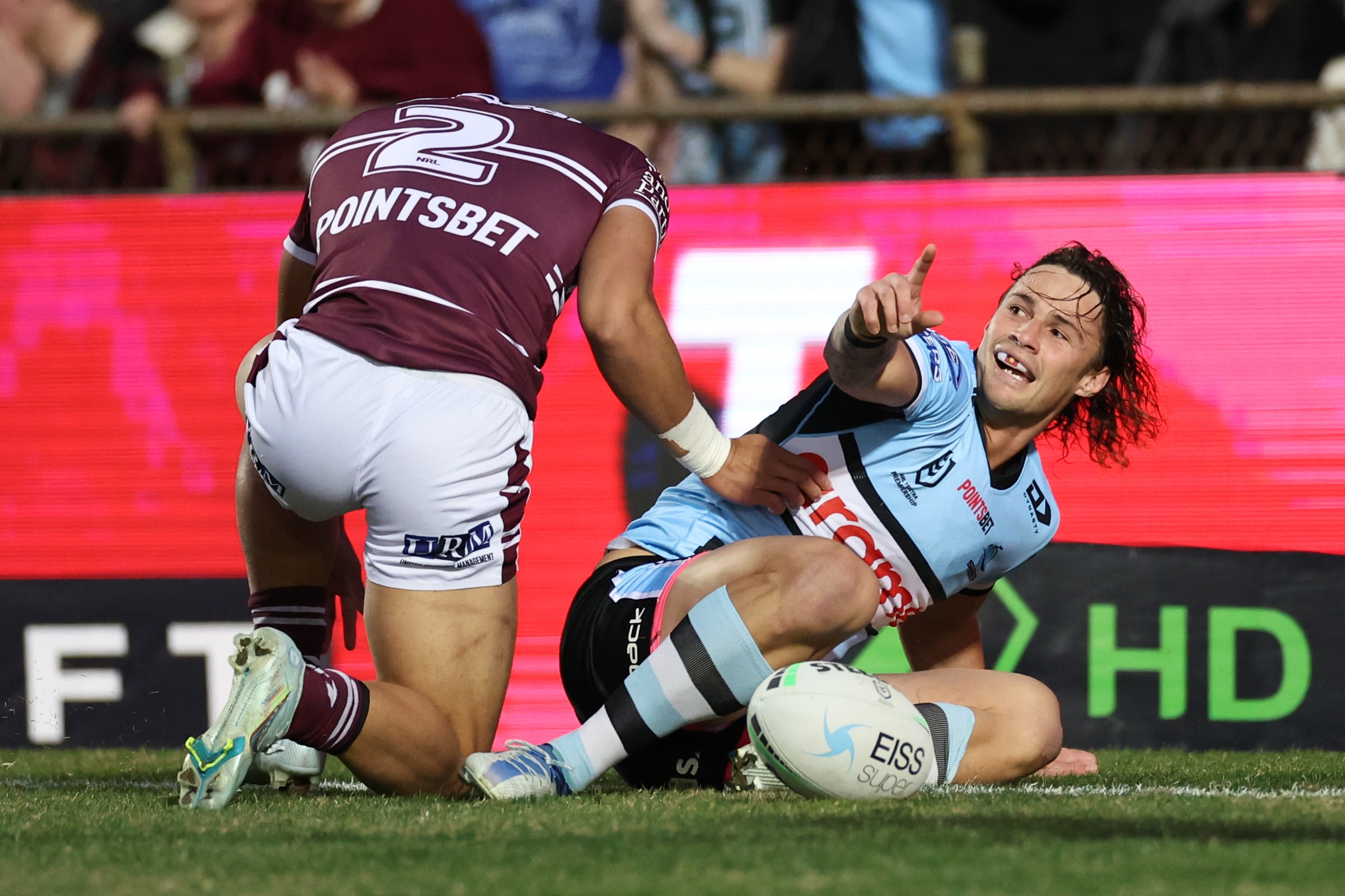 The Sharks had already scored all 40 of their points, with halfback Nicho Hynes and late call-up on the wing Matt Ikuvalu doubling up, by the time the Sea Eagles got on the board.