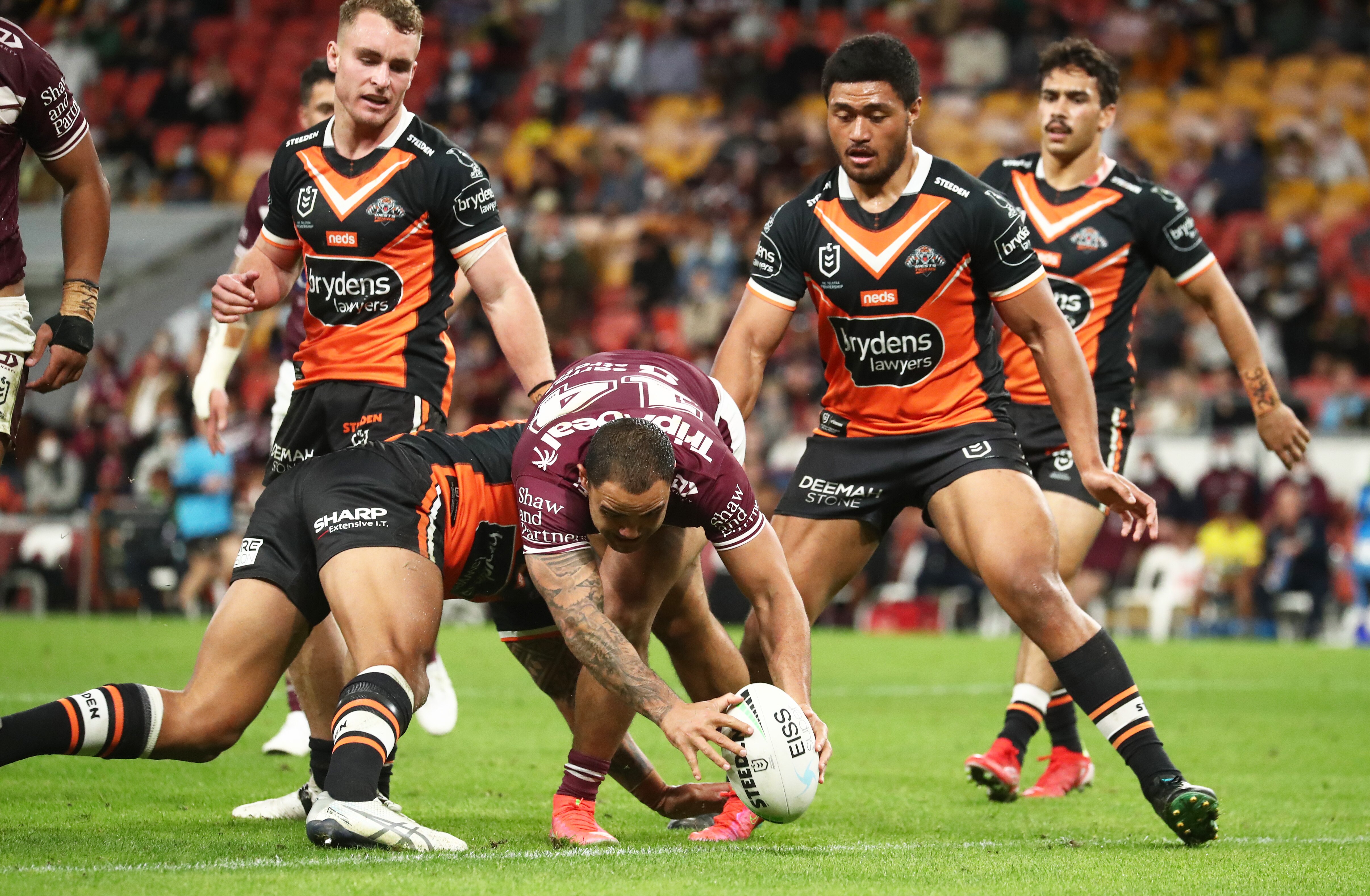 The Tigers, whose finals hopes are hanging by a thread after this loss, take on the Warriors next Friday in Brisbane while the Sea Eagles are playing Cronulla next weekend in Redcliffe.