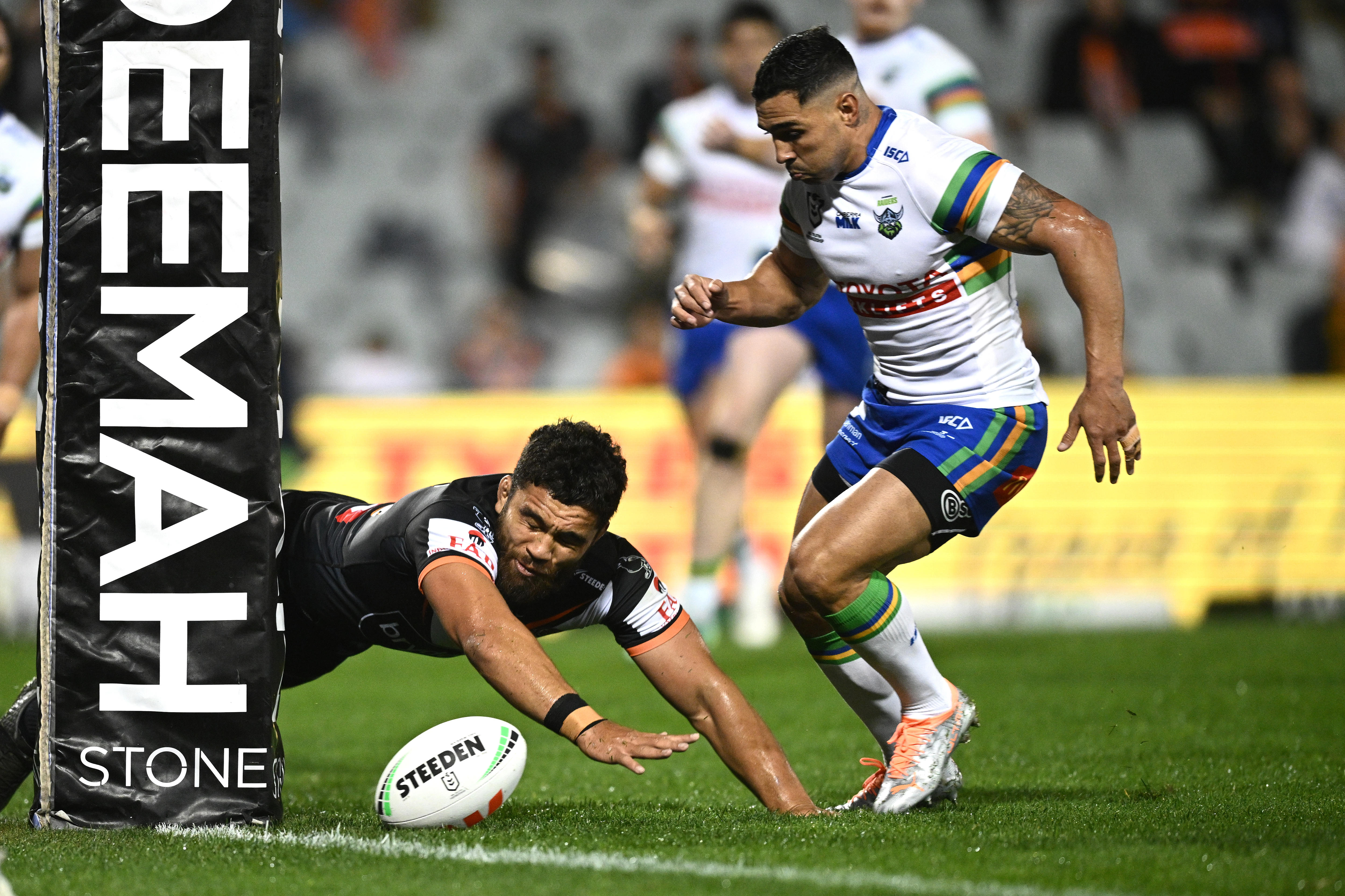 The extra-man advantage proved the perfect invitation for the Tigers, who had looked more dangerous on the edges all night but were thwarted by resilient Raiders defence.