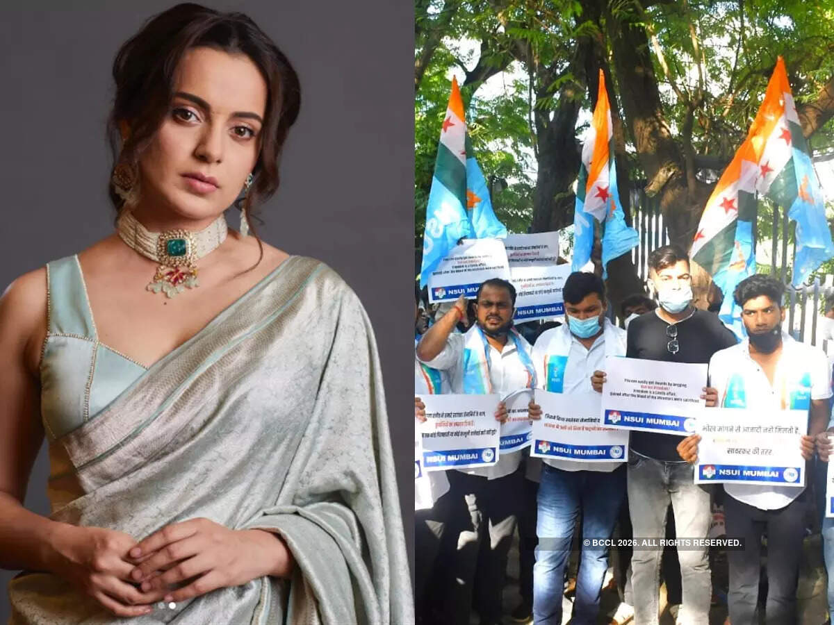 Protests erupted outside her house on Friday afternoon. A group of the NSUI staged a protest and demanded that her Padma Shri award be taken back for 'insulting' the brave freedom fighters and martyrs.