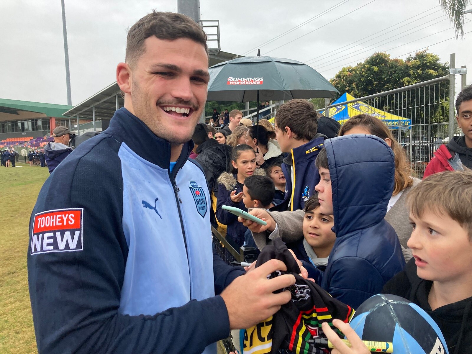 The hero worship flows both ways as the New South Wales Blues take their training session to flood-stricken Lismore.