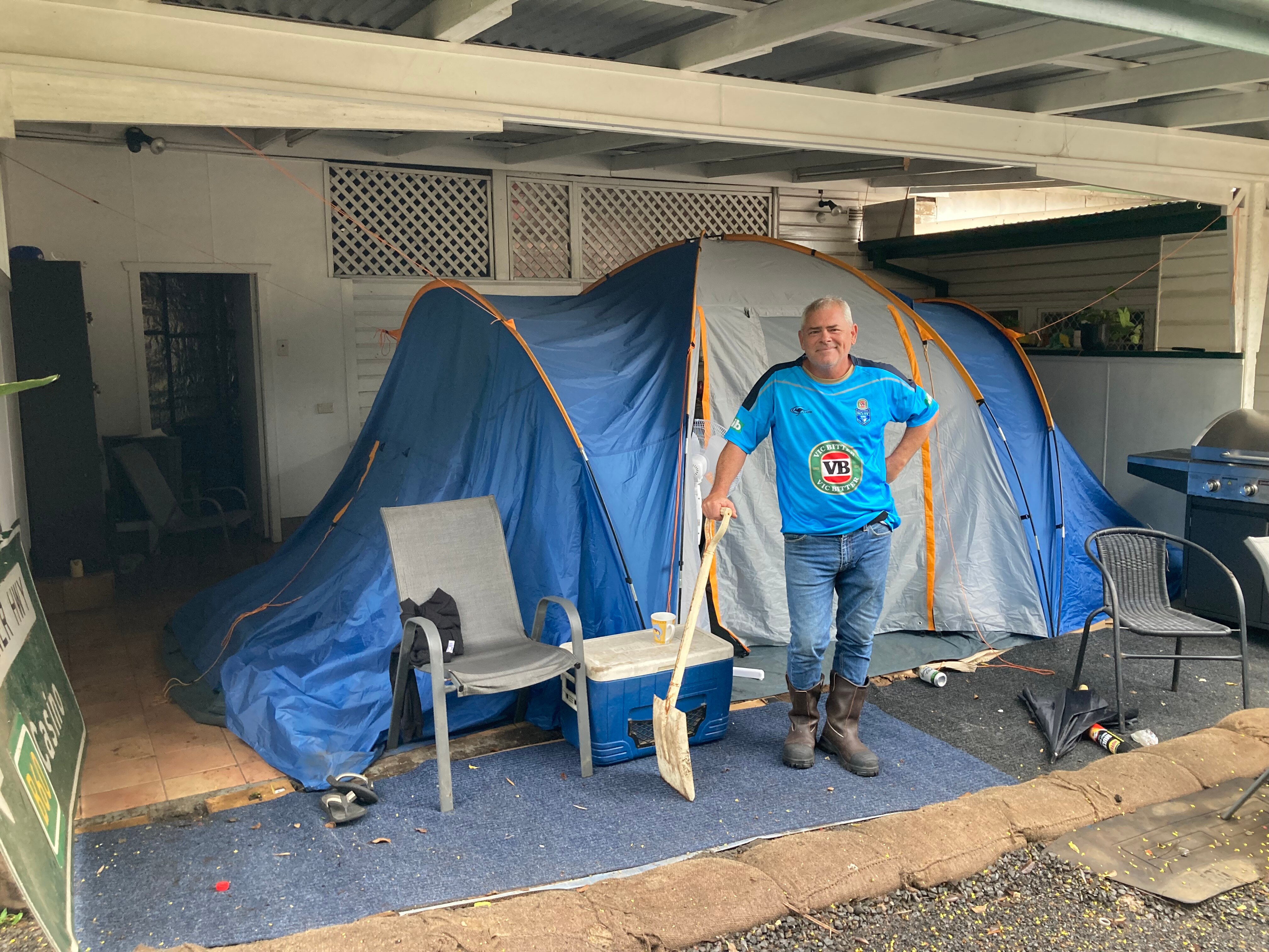 He moved back into this South Lismore home three weeks ago and said he chose to camp in the shell of his home.