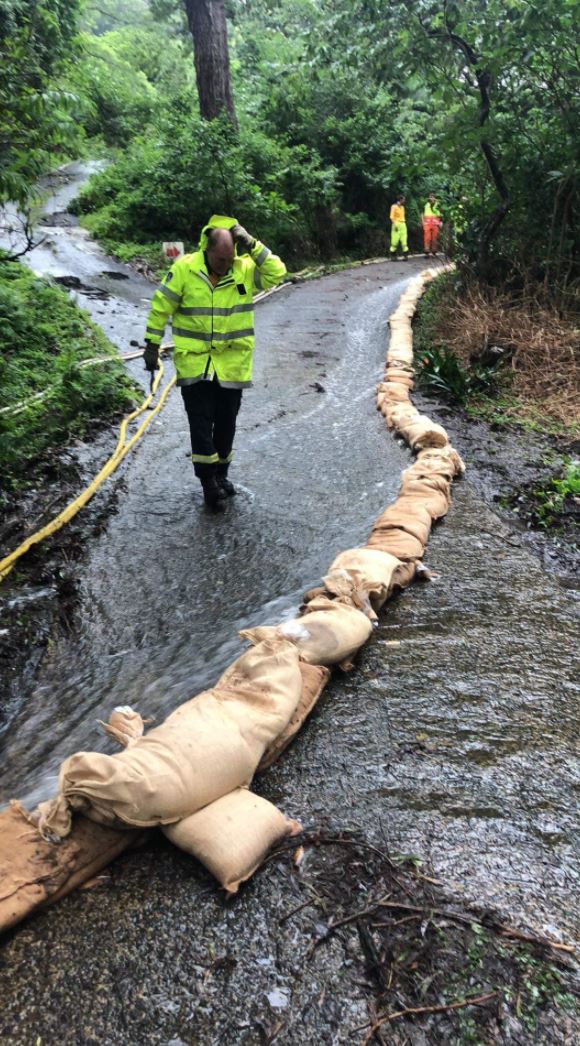 Wollongong City SES and the local RFS used a network of pipes, hoses, and sandbags to pump thousands of litres of water from the dam.