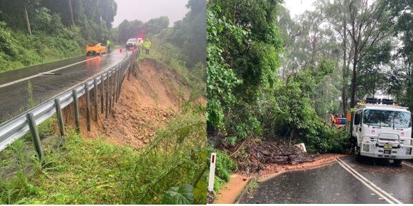 A landslip also caused the closure of Moss Vale Road on Monday, with the Cambewarra to Fitzroy Falls roads and Kangaroo Valley and Jamberoo Mountains roads also closed.