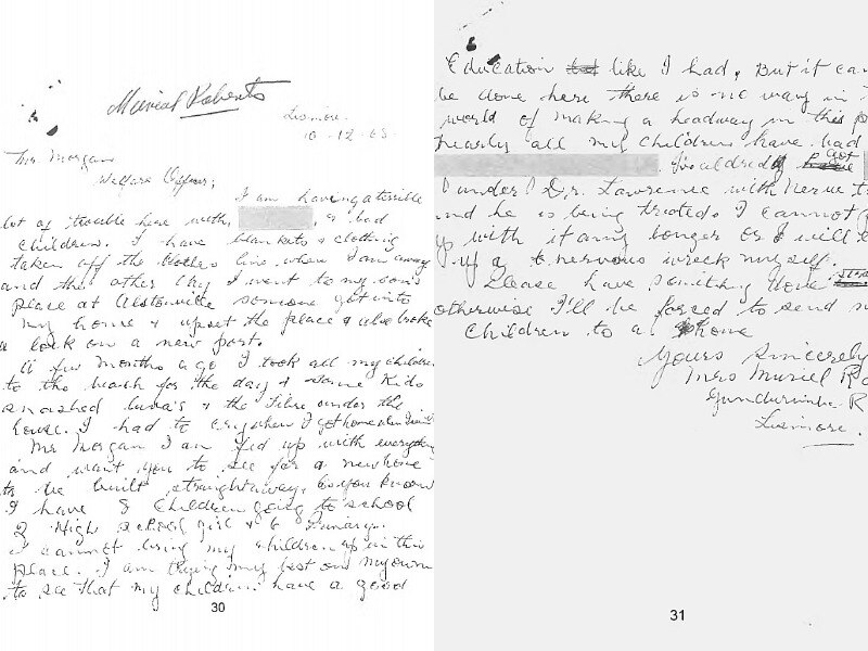 Lois's mother didn't know about the abuse but expressed concern about remaining on the reserve in a letter she wrote to the Aborigines Welfare Board.