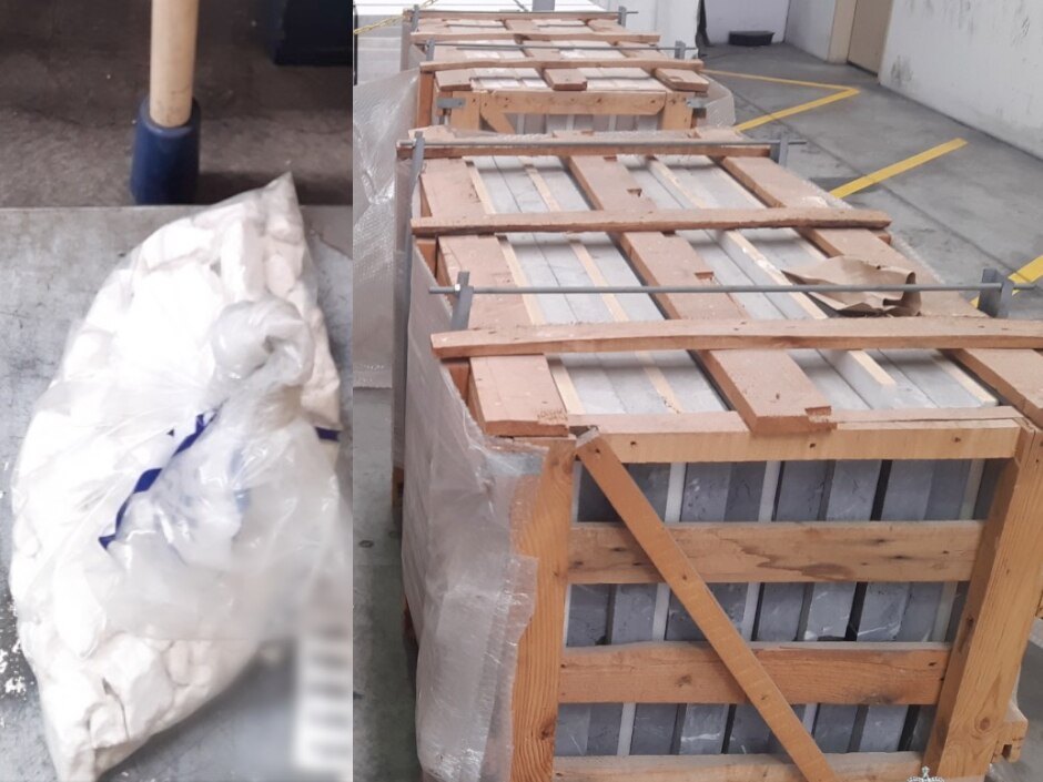 More than 1060 kilograms of methylamphetamine was found concealed in marble stone on 19 shipping containers that arrived in Sydney's Port Botany.