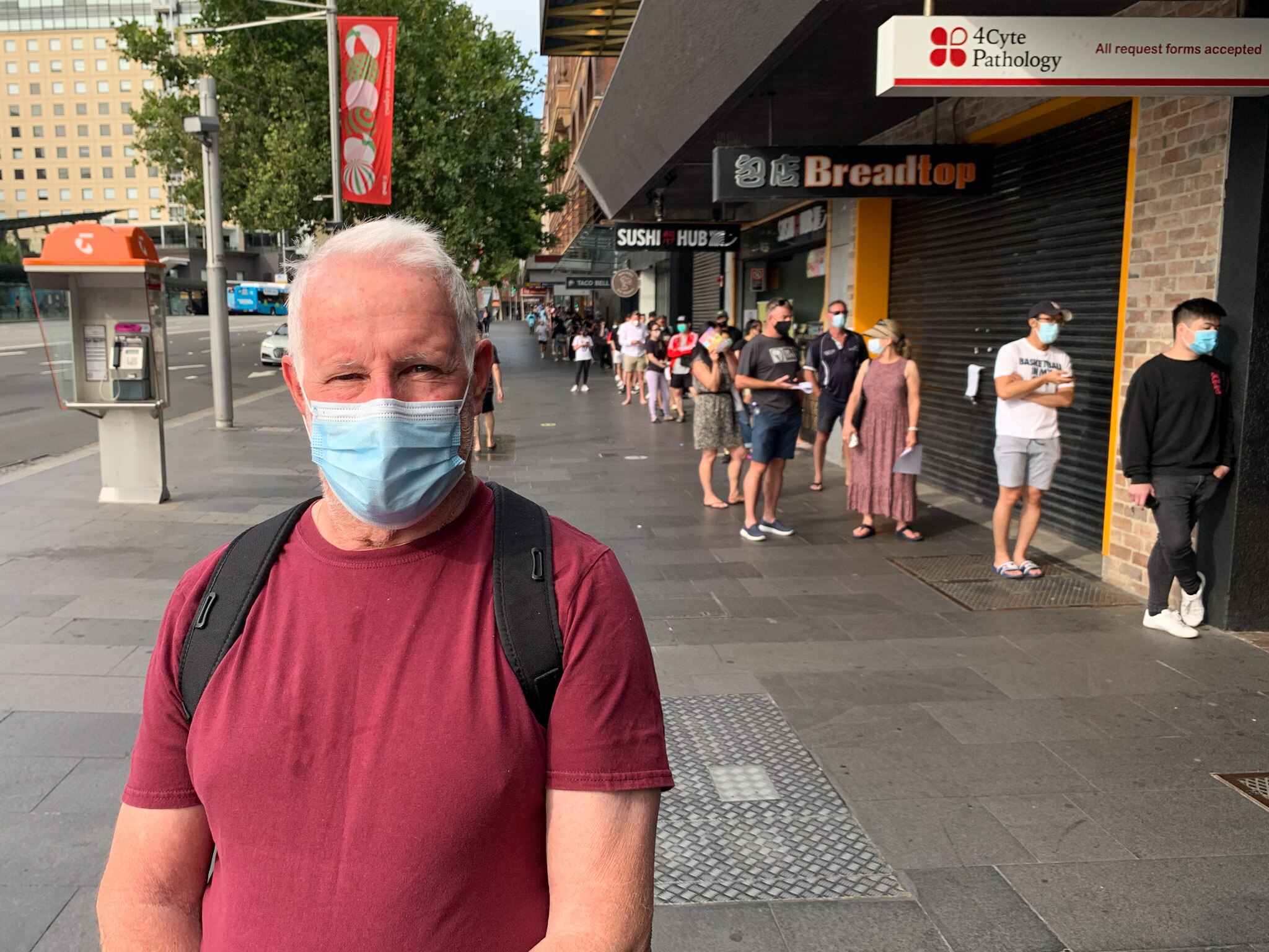 He was there an hour ahead of opening at the testing site in Sydney's CBD, as he had previously struggled to get a day six test as required as an international traveller.