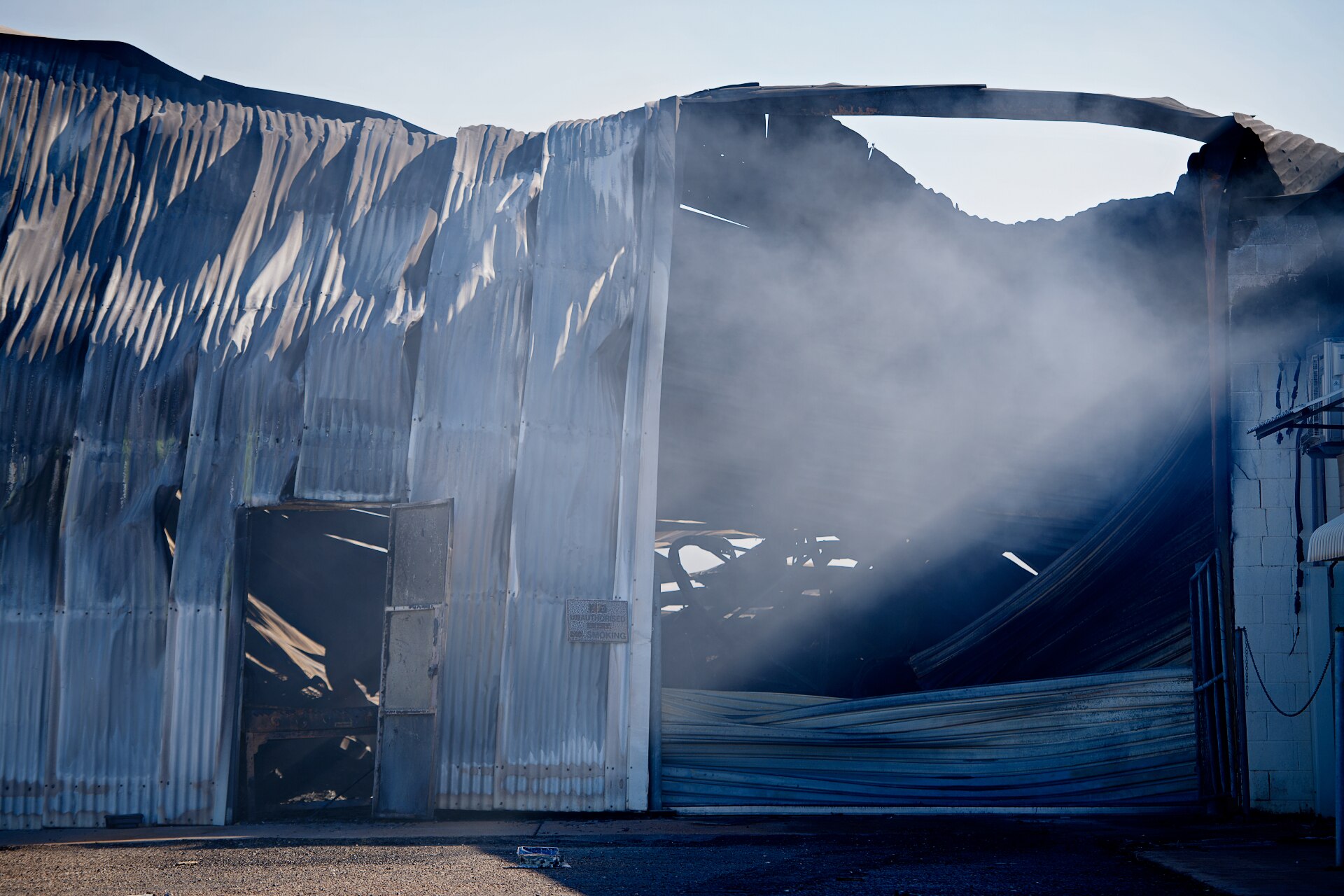 Firefighters remained at the scene on Monday morning, as it continued to smoulder.