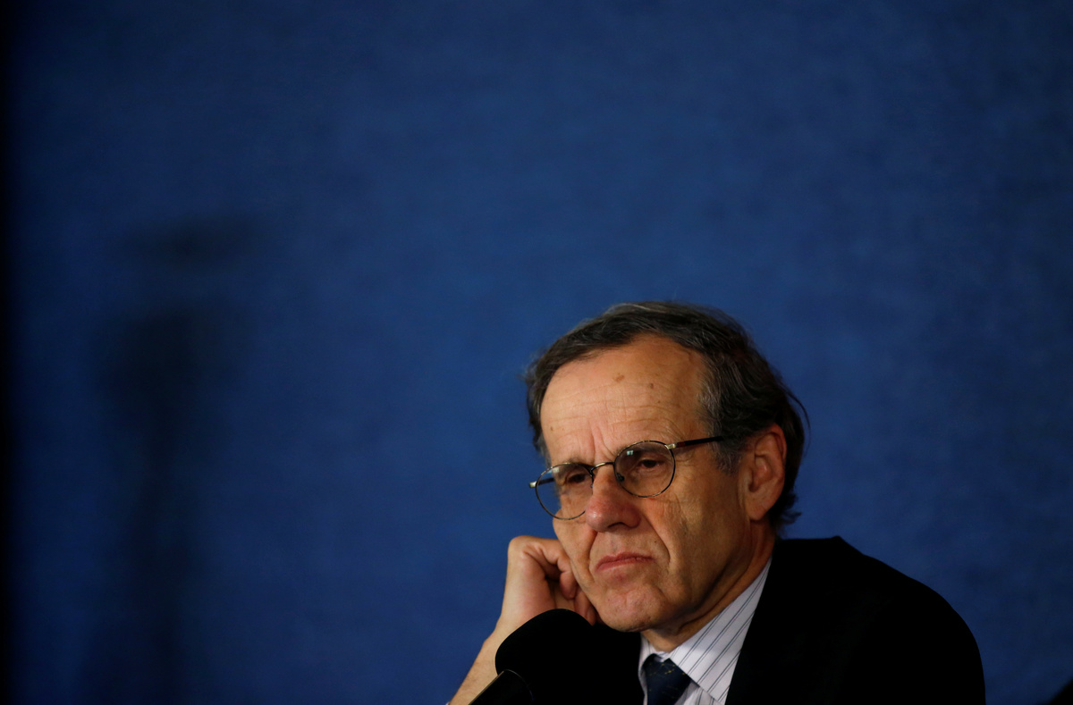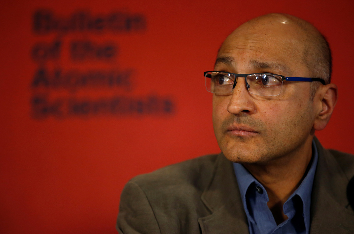 Sivan Kartha listens to fellow members of the Bulletin of the Atomic Scientists talk about their decision to move the 'Doomsday Clock' hands to two minutes until midnight at a press conference in Washington, U.S. January 25, 2018. REUTERS/Leah Millis