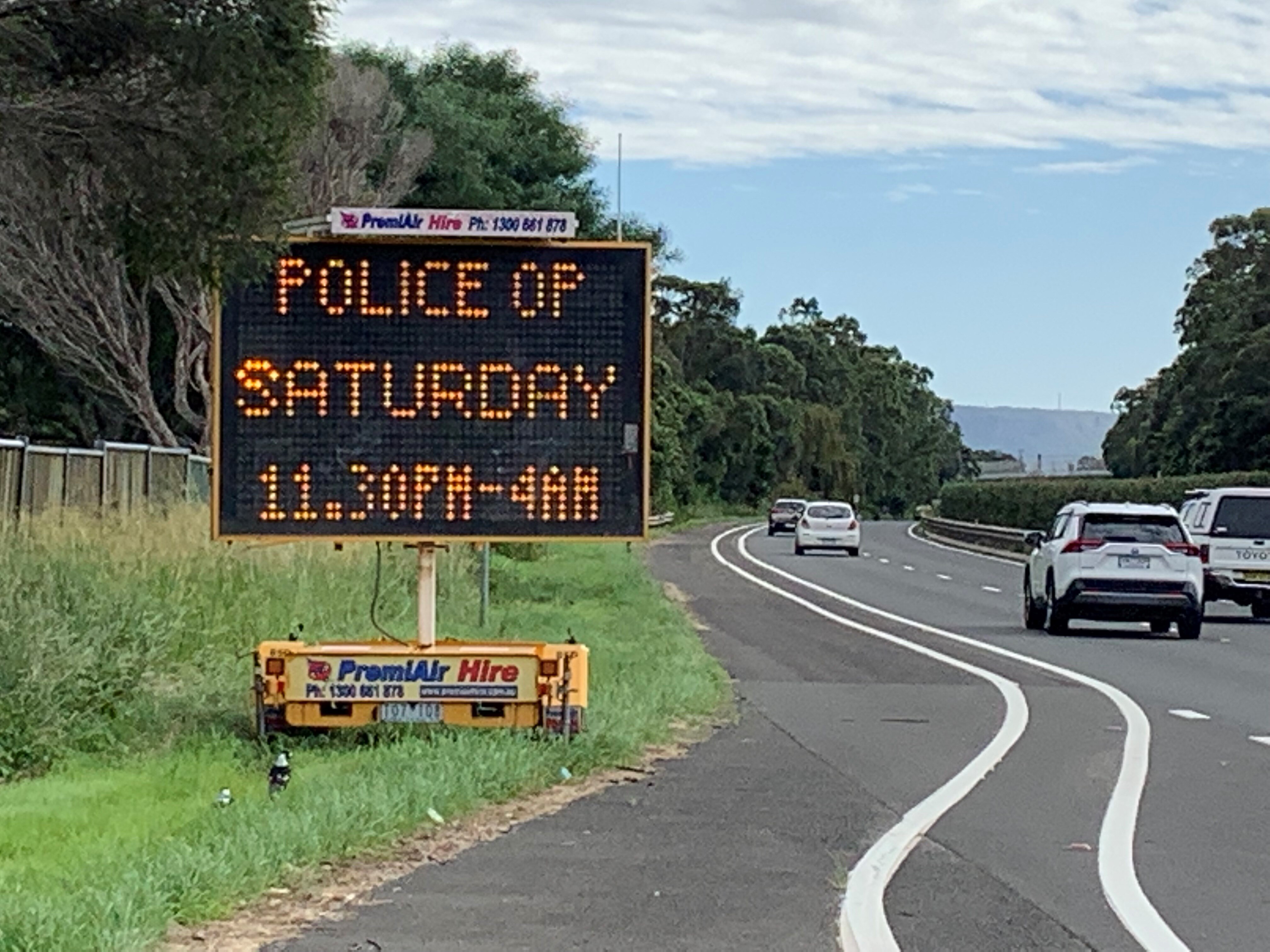 Police have erected signs in Wollongong announcing a special operation on Saturday to coincide with a ship registered to carry nuclear waste berthing at Port Kembla.