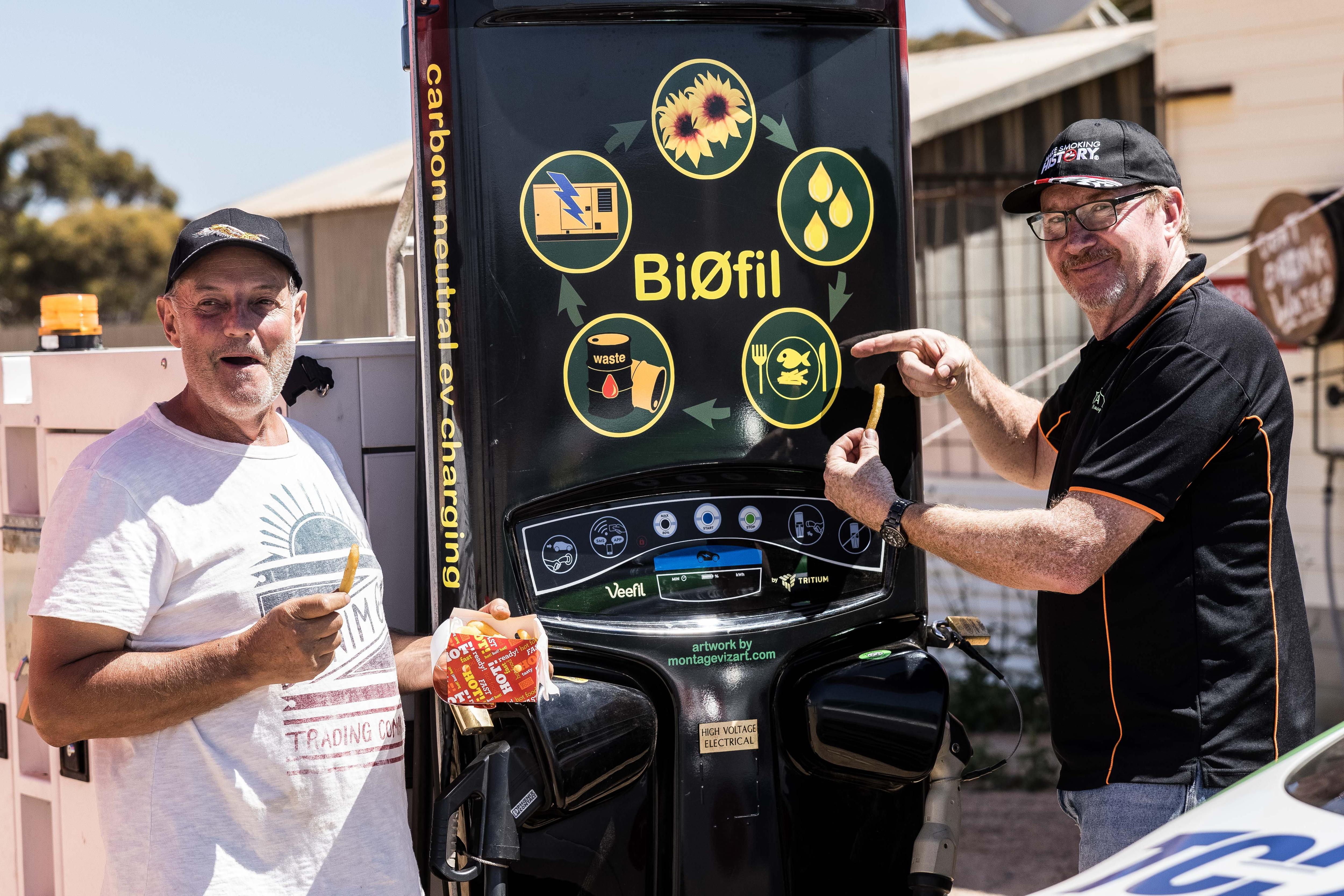 The $75,000 Biofil system was crowd-funded and plugs a 720km gap between proposed fast chargers in Western Australia and South Australia.