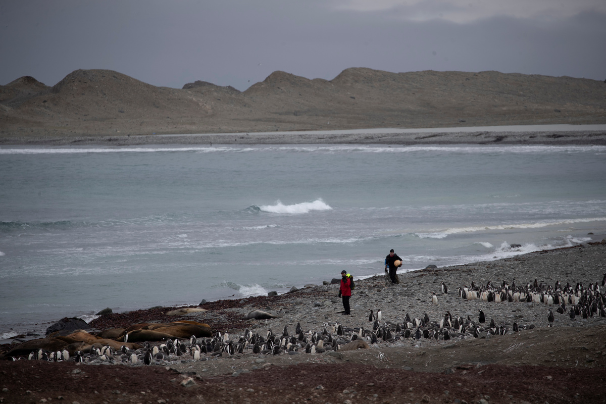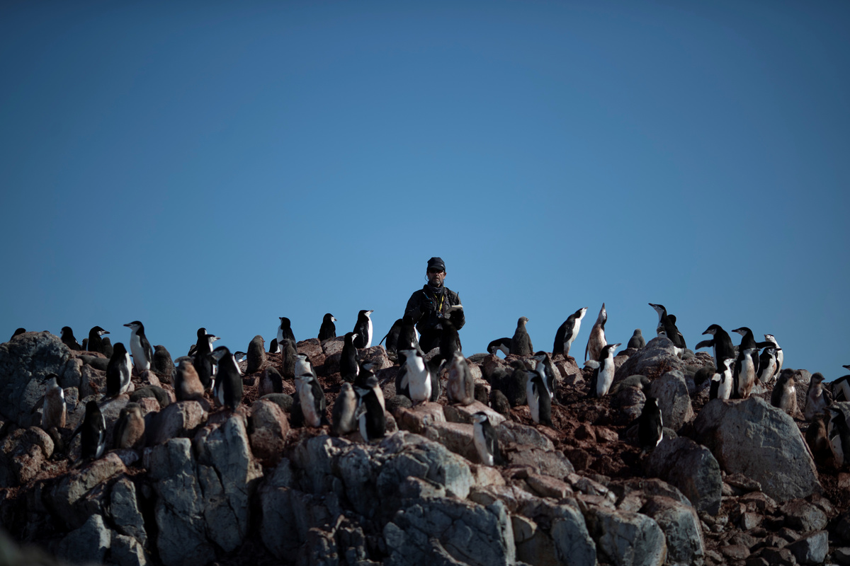 Steve Forrest, a scientist, counts the number of chinstrap penguins in a colony standing on Anvers Island, Antarctica, February 4, 2020. REUTERS/Ueslei Marcelino