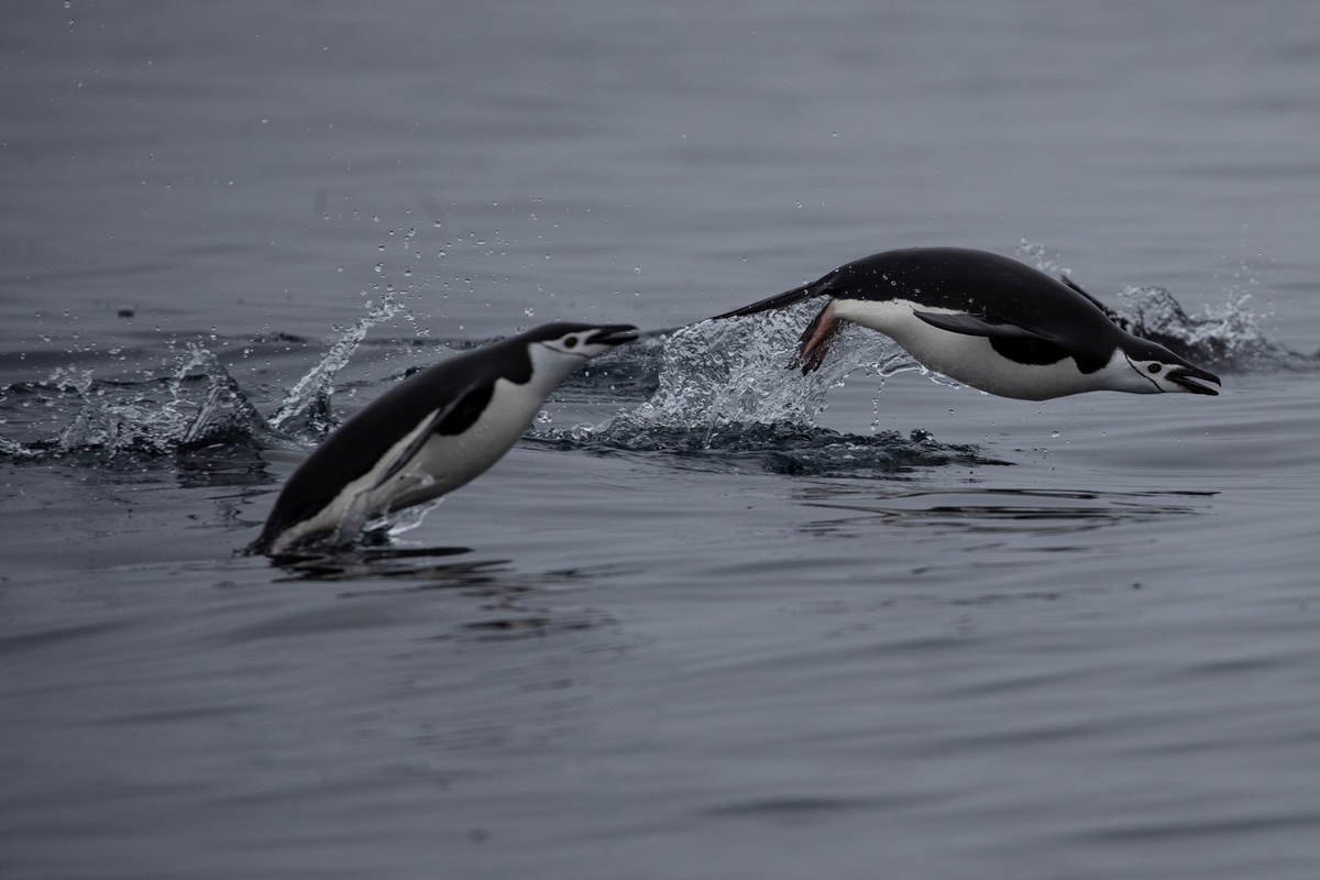 A pair of chinstrap penguins swim near Two Hummock Island, Antarctica, February 2, 2020. REUTERS/Ueslei Marcelino