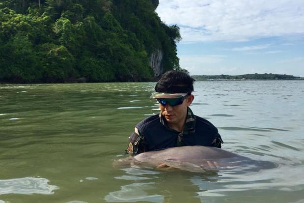 Worried about her chances of survival alone in the Andaman Sea, officials and veterinarians decided to tend her themselves. Mariam is the first phayoon in Thailand to be taken care of by humans.