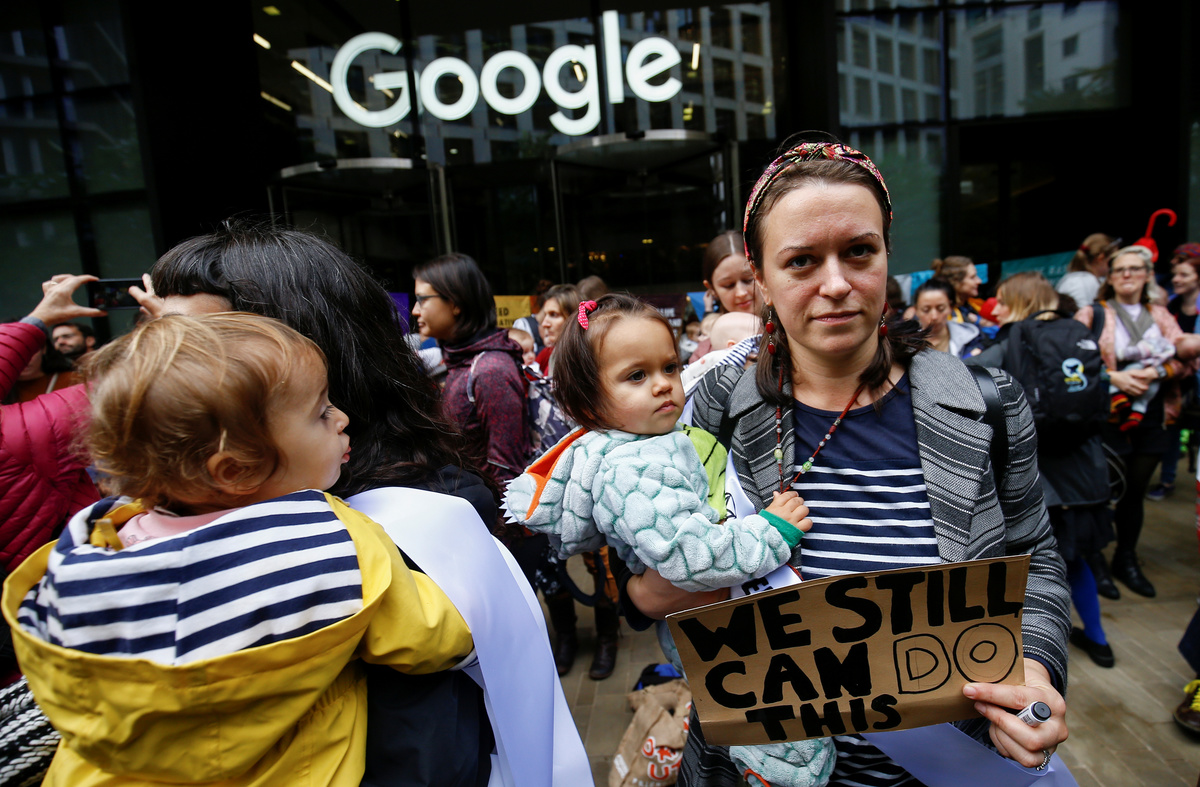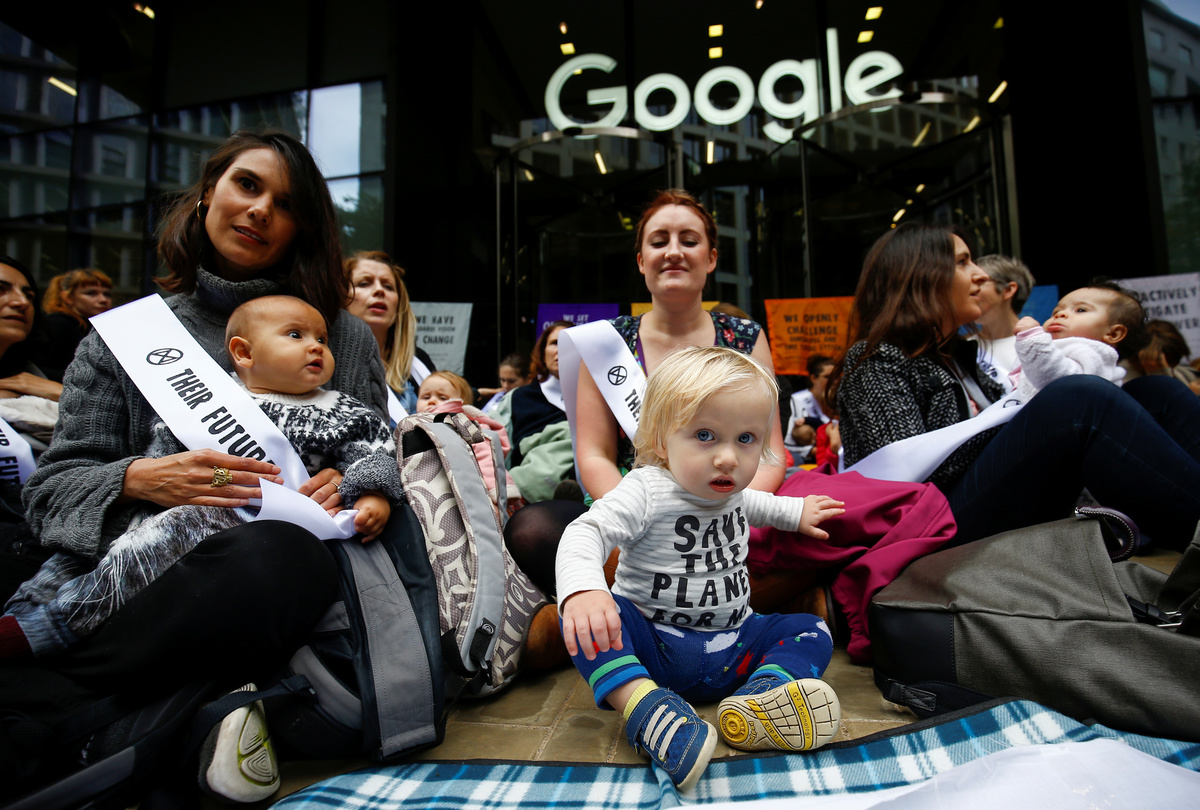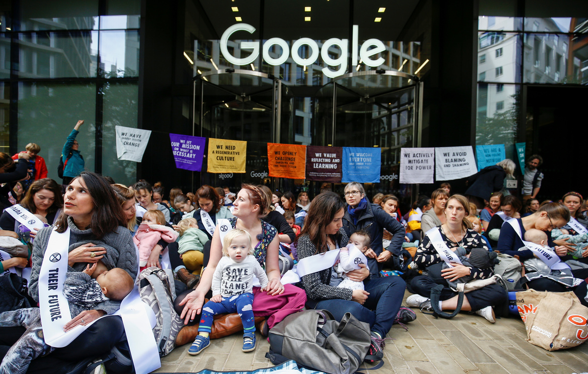 LONDON (Reuters) - About 150 mothers with babies and young children defied a police ban on climate protests to stage a "nurse-in" outside the London offices of Google on Wednesday, while activists launched a parallel protest at the premises of its subsidiary YouTube.