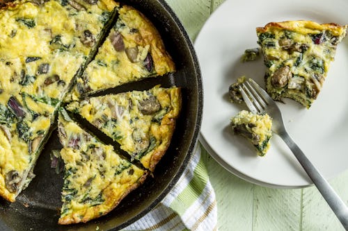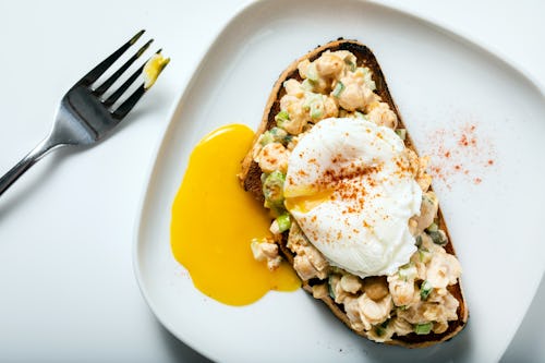 When a smoothie won't cut it, Dunne make hot quinoa, similar to oatmeal. "I use a base of almond or coconut milk to cook it and then add in spices like cinnamon and nutmeg, roasted pumpkin seeds or almond slices, and fruit like blueberries or mango," Dunne explained. "Quinoa is high in protein and fiber, while the seeds and nuts provide healthy fat and the fruit provides phytonutrients and more fiber. Plus it's really tasty and feels snuggly in my stomach on a cold morning."