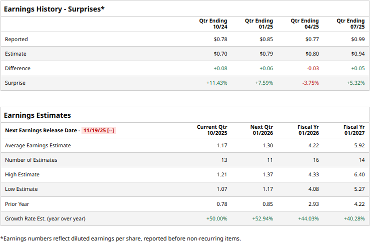 The semiconductor giant is gearing up to release its third-quarter results in the upcoming month. Ahead of the event, analysts expect NVIDIA to report a profit of $1.17 per share, up a staggering 50% from $0.78 per share reported in the year-ago quarter. While the company has missed the Street’s bottom-line estimates once over the past four quarters, it has surpassed the projections on three other occasions.