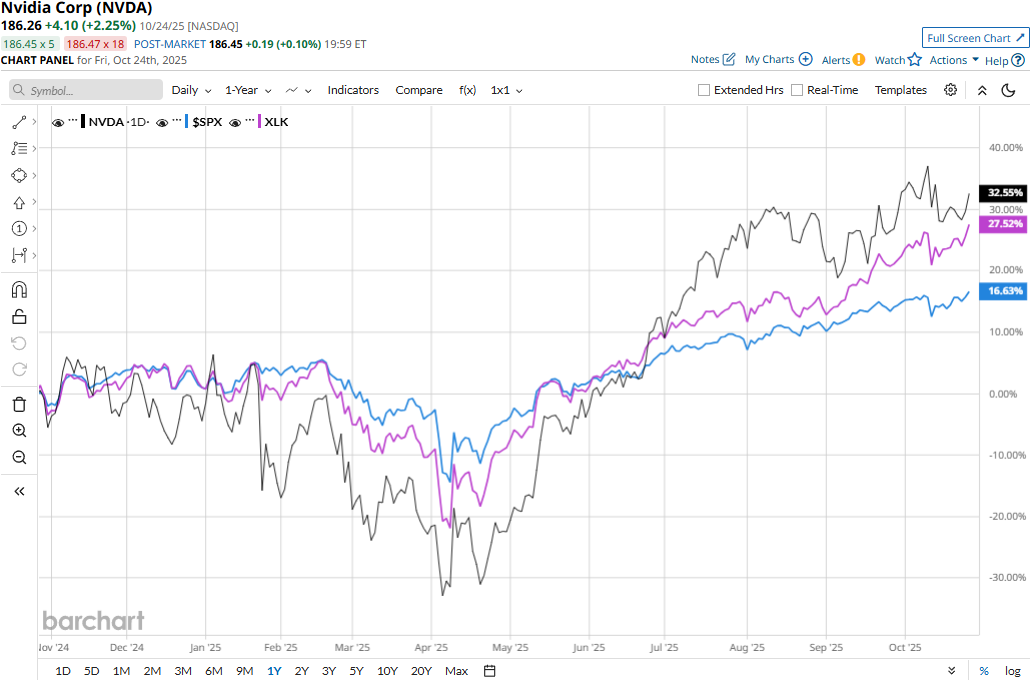 NVDA stock prices have soared 32.7% over the past 52 weeks, notably outpacing the S&P 500 Index’s ($SPX) 16.9% gains and the Technology Select Sector SPDR Fund’s (XLK) 28.1% surge during the same time frame.