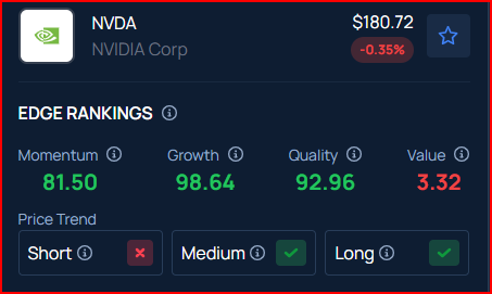 Benzinga’s Edge Rankings place Nvidia in the 98th percentile for growth and the 3rd percentile for value, reflecting a mixed performance profile. Check the detailed report here