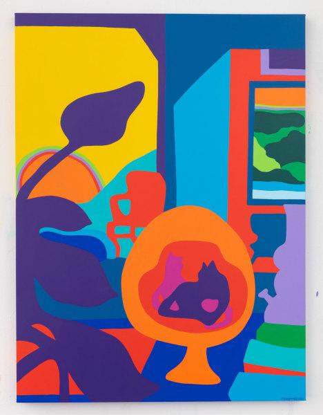 For the artist, the vibrant palette and candy-coated surfaces of the canvases felt lively and upbeat during a terribly gloomy time.
