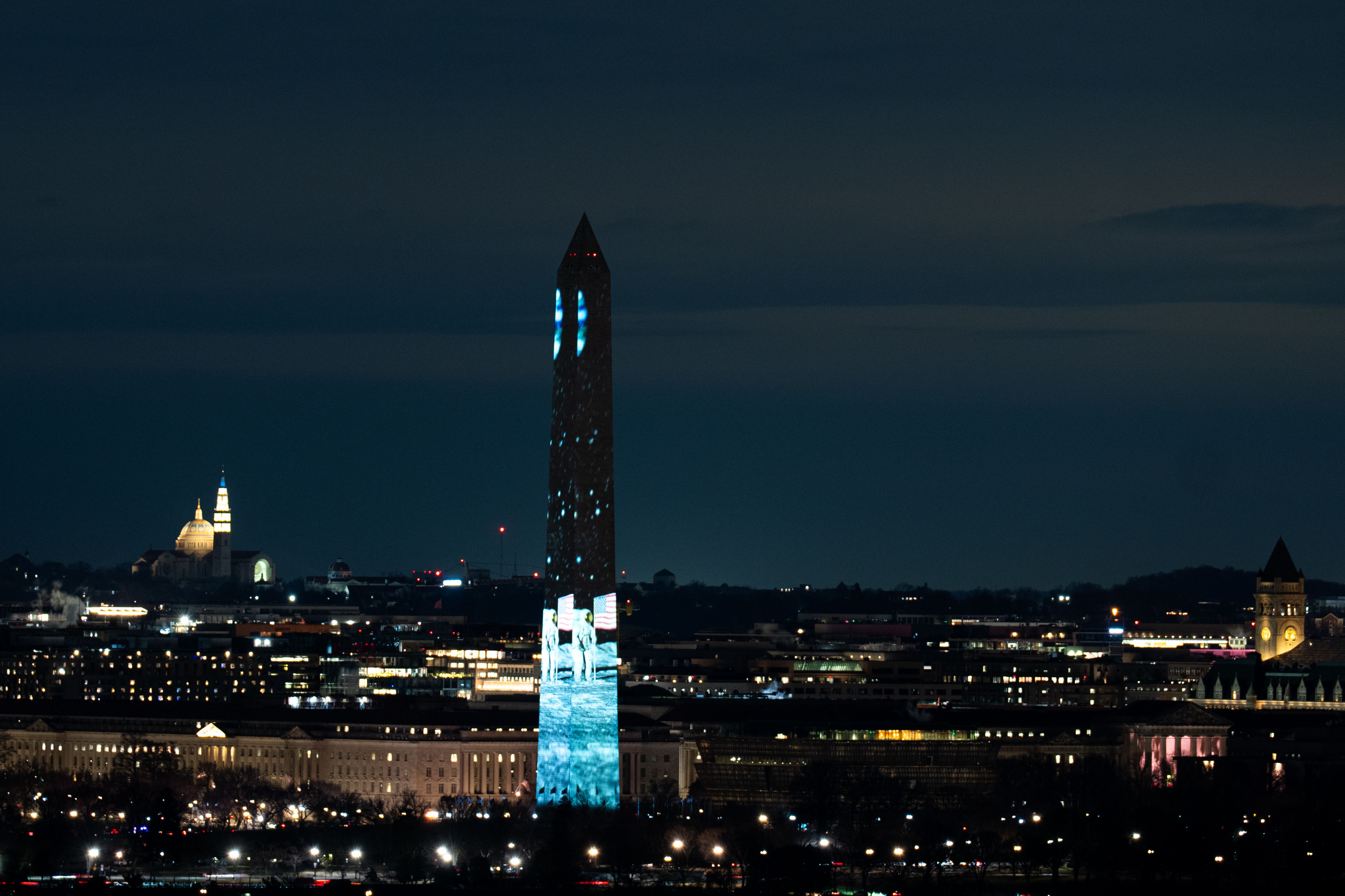 - "This Washington Monument illumination is the opening signature moment of a year-long series of marquee national events celebrating the triumph of the American spirit."