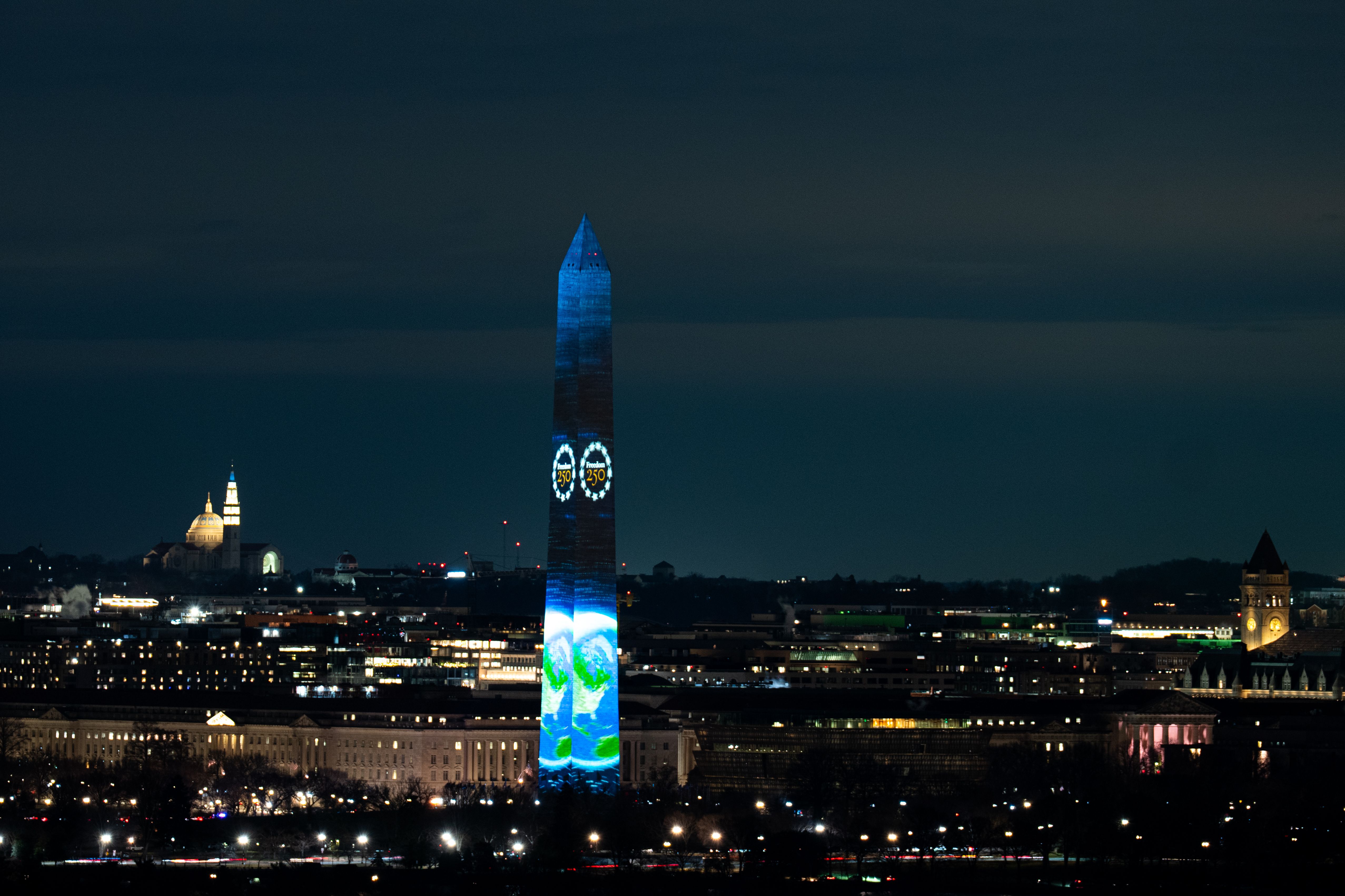 In photos: Washington Monument lights up for America 250