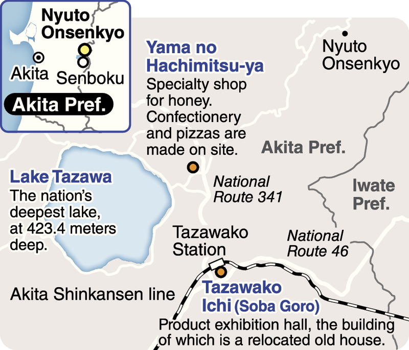 Telephone inquiry: Senboku City Tazawako Tourist Information Center (Folake) at 0187-43-2111. For info on snowshoe hiking, call Kyukamura Nyuto Onsenkyo at 0187-46-2244.