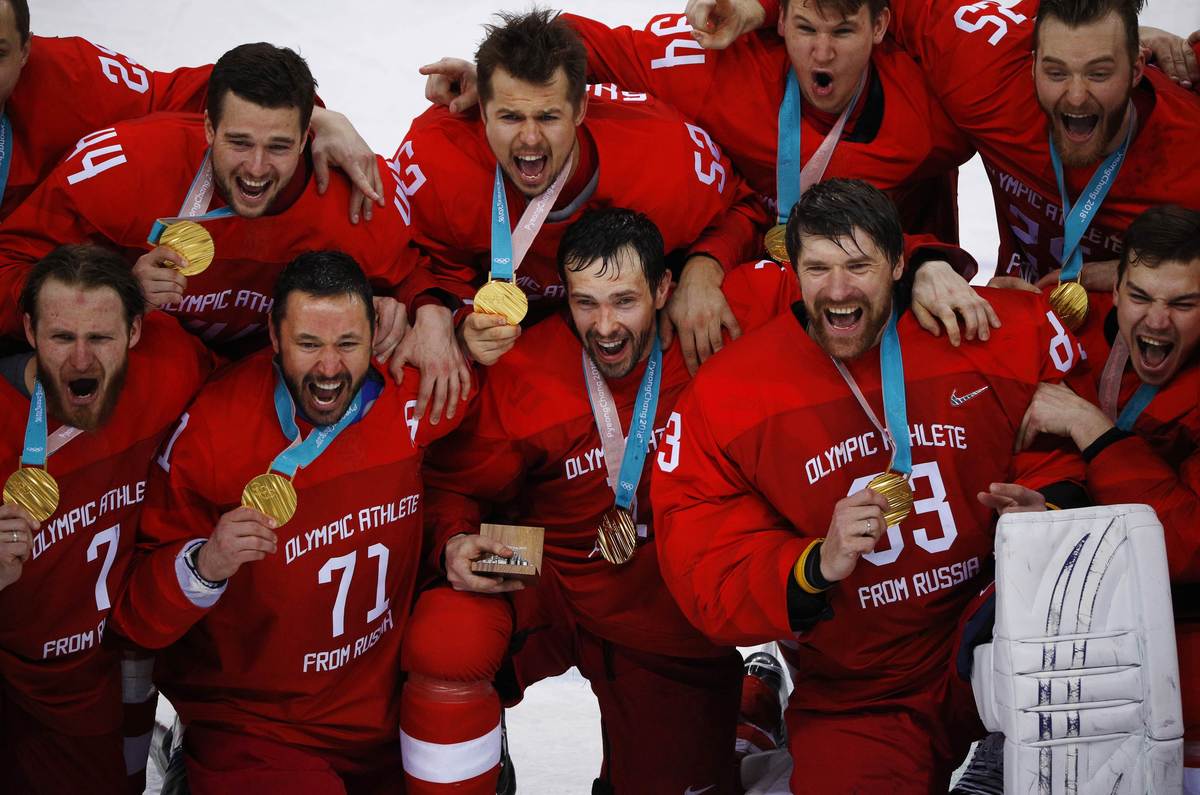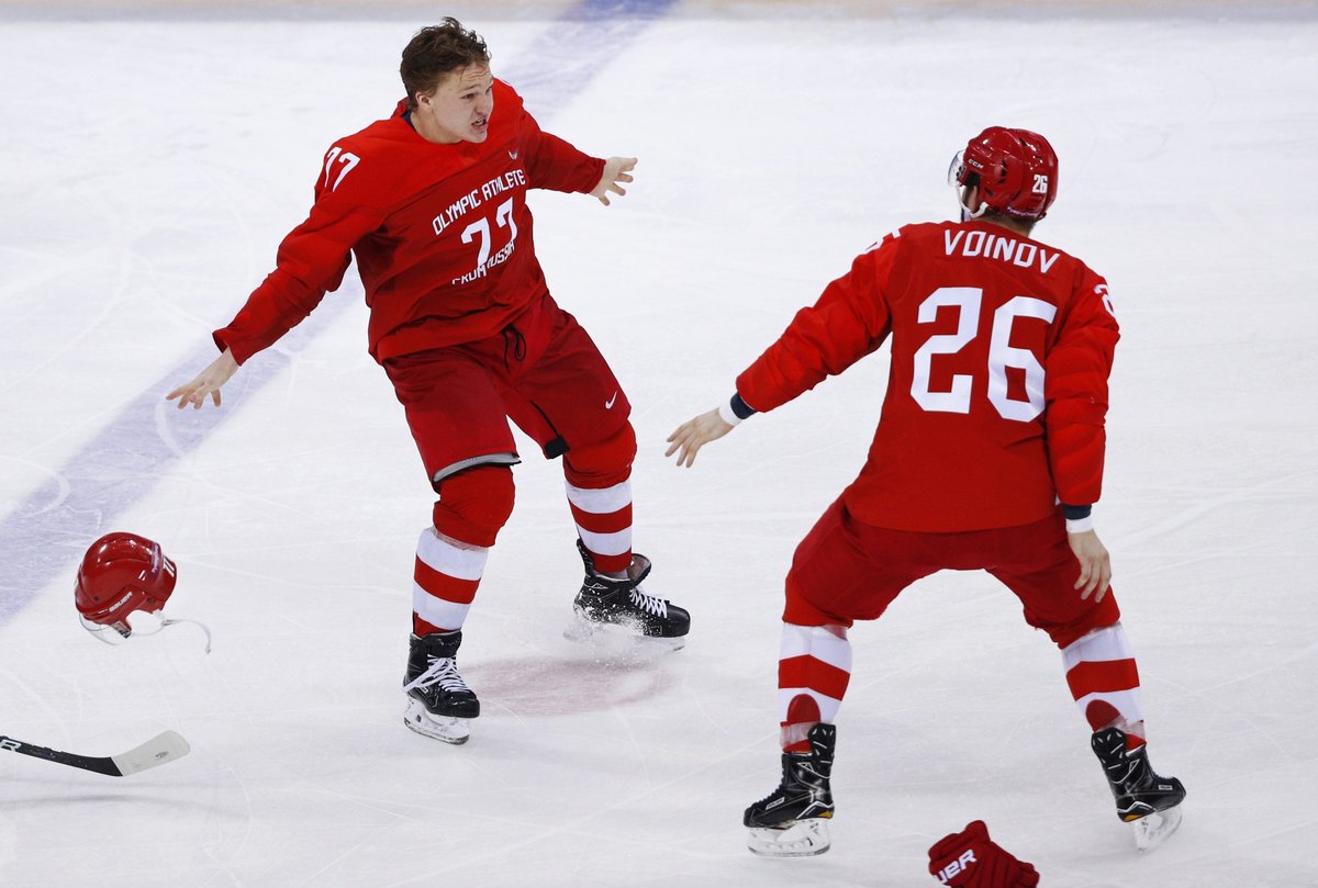 Ice Hockey - Pyeongchang 2018 Winter Olympics - Men's Final Game - Olympic Athletes from Russia v Germany - Gangneung Hockey Centre, Gangneung, South Korea - February 25, 2018 - Brooks Macek and Marcel Noebels of Germany react after their overtime loss. REUTERS/Brian SnyderOlympic Athlete from Russia Nikita Gusev reacts after scoring a goal. REUTERS/Kim Kyung-HoonIce Hockey - Pyeongchang 2018 Winter Olympics - Men's Final Match - Russia - Germany - Gangneung Hockey Centre, Gangneung, South Korea - February 25, 2018 - Olympic Athlete from Russia Kirill Kaprizov reacts with teammates after scoring a goal. REUTERS/Kim Kyung-HoonIce Hockey - Pyeongchang 2018 Winter Olympics - Men Final Match - Olympic Athletes from Russia v Germany - Gangneung Hockey Centre, Gangneung, South Korea - February 25, 2018 - Germany's players react after Olympic Athletes from Russia won the final match. REUTERS/Kim Kyung-HoonIce Hockey - Pyeongchang 2018 Winter Olympics - Men's Final Game - Olympic Athletes from Russia v Germany - Gangneung Hockey Centre, Gangneung, South Korea - February 25, 2018 - Kirill Kaprizov, an Olympic Athlete from Russia, celebrates scoring a goal with team mate Vyacheslav Voinov. REUTERS/Brian SnyderIce Hockey - Pyeongchang 2018 Winter Olympics - Men Final Match - Olympic Athletes from Russia v Germany - Gangneung Hockey Centre, Gangneung, South Korea - February 25, 2018 - Olympic Athlete from Russia Nikita Gusev reacts after scoring. REUTERS/David W CernyIce Hockey - Pyeongchang 2018 Winter Olympics - Men Final Match - Olympic Athletes from Russia v Germany - Gangneung Hockey Centre, Gangneung, South Korea - February 25, 2018 - Ilya Kovalchuk, an Olympic Athlete from Russia, fails in his attempt to score past Germany's goalie Danny Aus Den Birken. REUTERS/Kim Kyung-HoonIce Hockey - Pyeongchang 2018 Winter Olympics - Men Final Match - Olympic Athletes from Russia v Germany - Gangneung Hockey Centre, Gangneung, South Korea - February 25, 2018 - Pavel Datsyuk, an Olympic Athlete from Russia, and Germany's Frank Hordler compete. REUTERS/Kim Kyung-HoonIce Hockey - Pyeongchang 2018 Winter Olympics - Men Final Match - Olympic Athletes from Russia v Germany - Gangneung Hockey Centre, Gangneung, South Korea - February 25, 2018 - Yannic Seidenberg of Germany and Olympic Athlete from Russia Alexander Barabanov in action. REUTERS/David W CernyIce Hockey - Pyeongchang 2018 Winter Olympics - Men Final Match - Olympic Athletes from Russia v Germany - Gangneung Hockey Centre, Gangneung, South Korea - February 25, 2018 - Olympic Athlete from Russia Nikita Gusev scores. REUTERS/David W CernyFans are pictured prior to the game. REUTERS/Brian Snyder