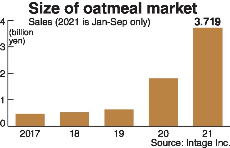 The market for oatmeal in the nine months from January to September this year was worth about 3.7 billion yen, or double the figure for the entire 12 months of last year, which was about 1.8 billion yen, market research firm Intage Inc. said.