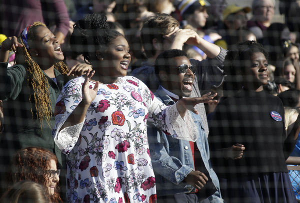Appearing in his role as motivator-in-chief, hoping for a successor who doesn't try to undo policies of his eight years as president, Obama alternately entertained, lectured and cajoled a young and diverse crowd of 4,500 at the Florida International University basketball arena.