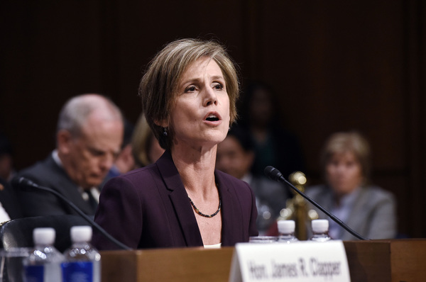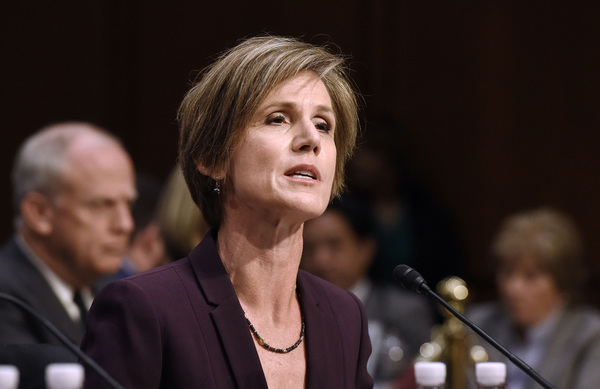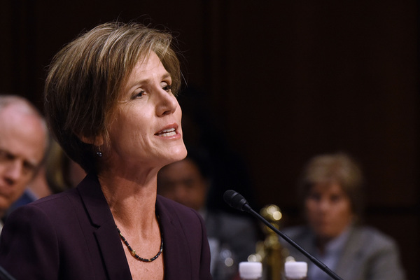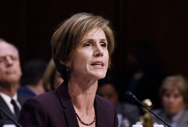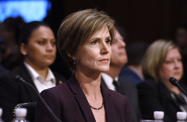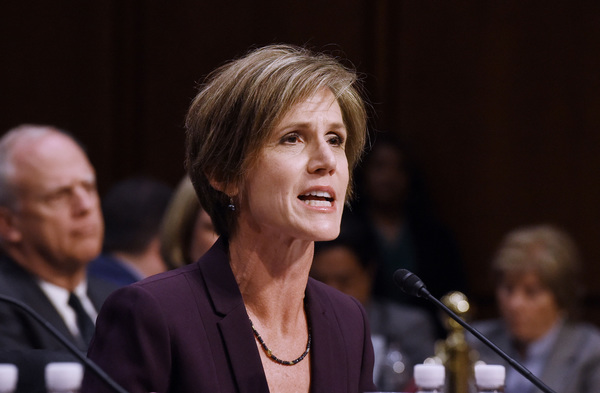 Yates, a holdover from the Obama administration's Justice Department, was acting attorney general for 10 days after Trump took office. She was fired when she said the Justice Department would not defend Trump's executive order seeking to bar travel from seven Muslim-majority countries.