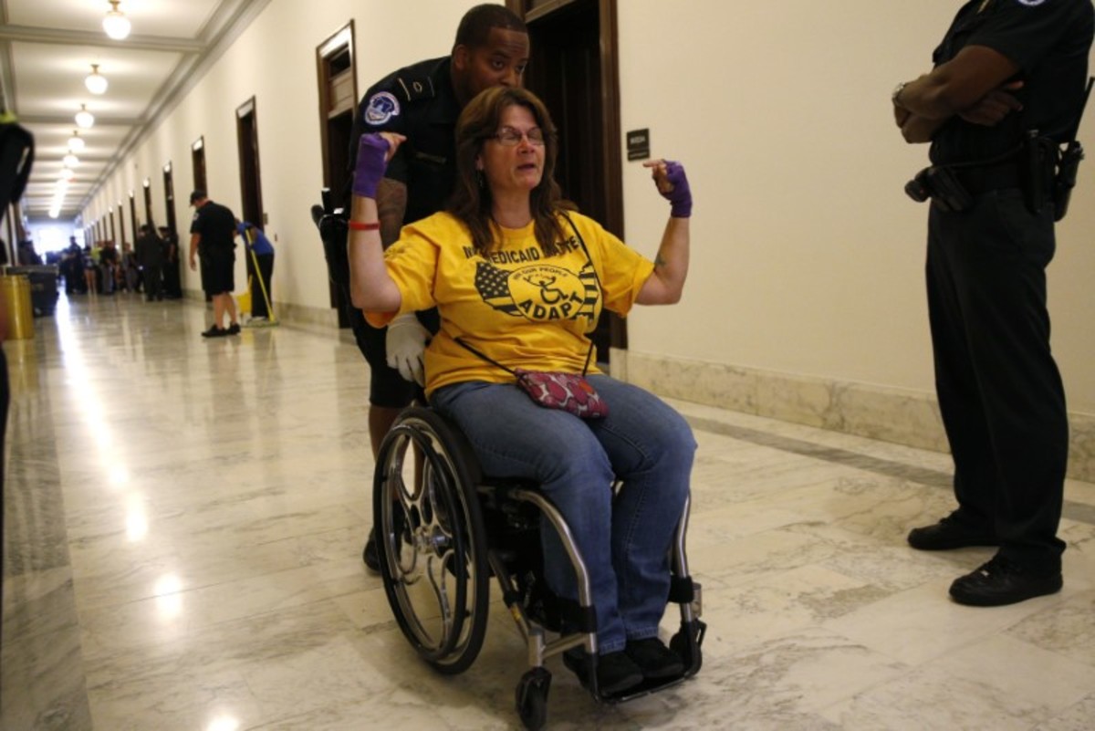 As lawmakers spoke about the legislation on the Senate floor, a protest erupted outside McConnell's personal office, with many people in wheelchairs blocking a hallway, holding signs and chanting: "No cuts to Medicaid." U.S. Capitol Police said 43 protesters were arrested and charged with obstruction.