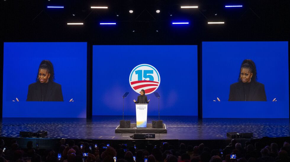 Amid “dark” times, Barack and Michelle Obama returned to Chicago to inspire the hope and change they touted 15 years ago in Grant Park as the results of the 2008 presidential election rolled in.