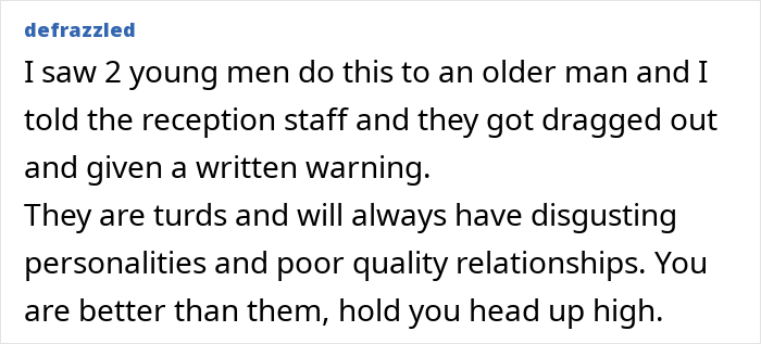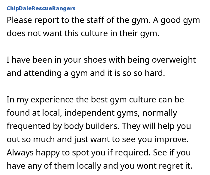 Unfortunately, these teens were acting the opposite of respectful, laughing and commenting at an overweight person at the gym, just trying to get their workout in. Their behavior really got under the person’s skin, which forced them to stop what they were doing and leave.