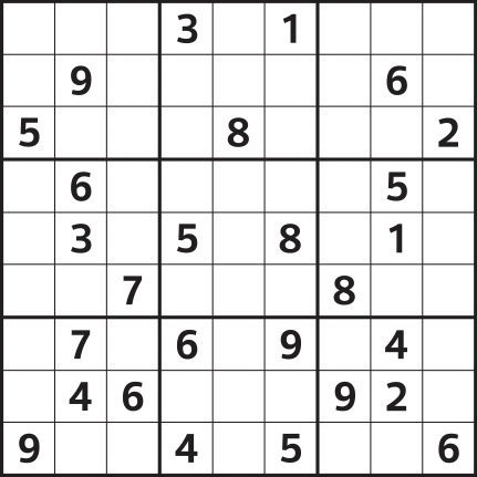 Fill the grid so that every row, every column and every 3x3 box contains the numbers 1 to 9.