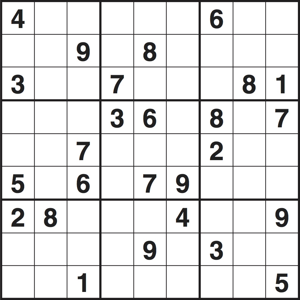 Fill the grid so that every row, every column and every 3x3 box contains the numbers 1 to 9.