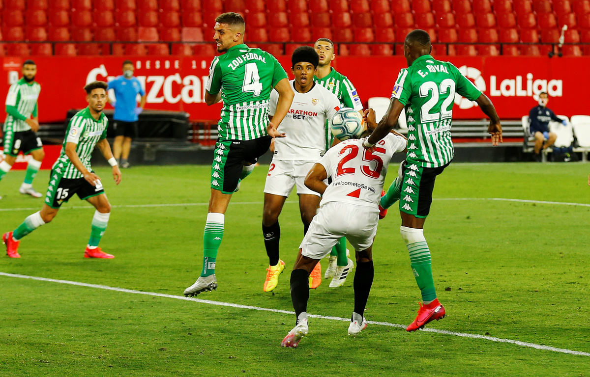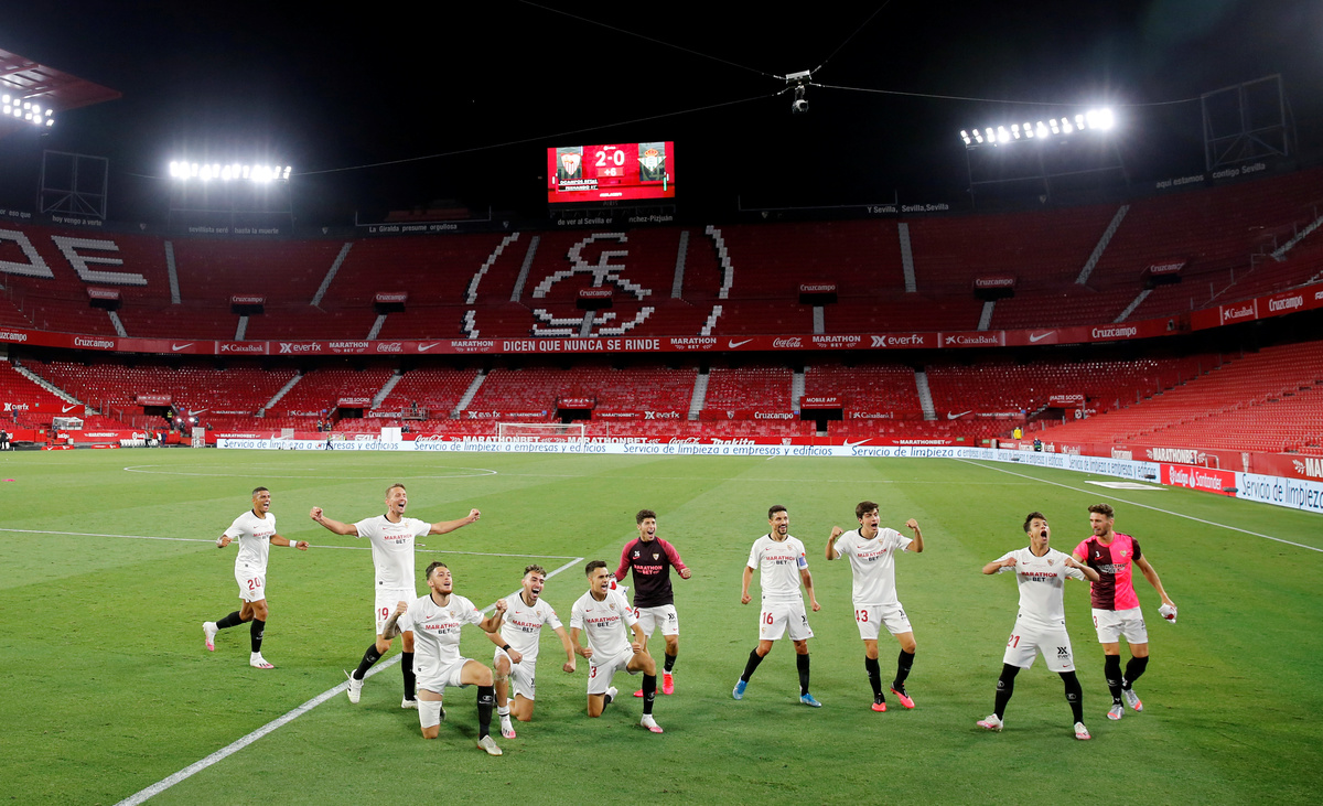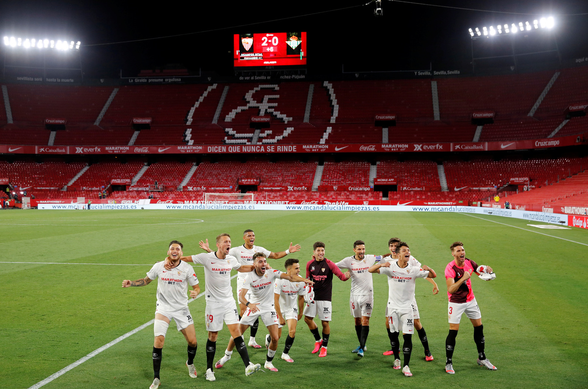 Sevilla dominated the derby in an empty and eerily quiet Sanchez Pizjuan which would usually be teeming with colour and noise for the occasion, but the red seats were left bare as fans were barred from attending for safety reasons.